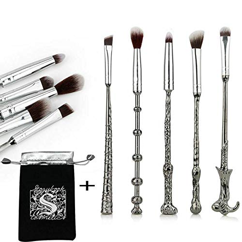 - Original Brush Sets – 5 Piece Makeup Brushes,For Fans Metal Wizard Wand Set Kit with Gift Bag, Perfect for Eyeshadow Palette, Foundation, Eyebrows and Powder use(Black) by JORCEDI