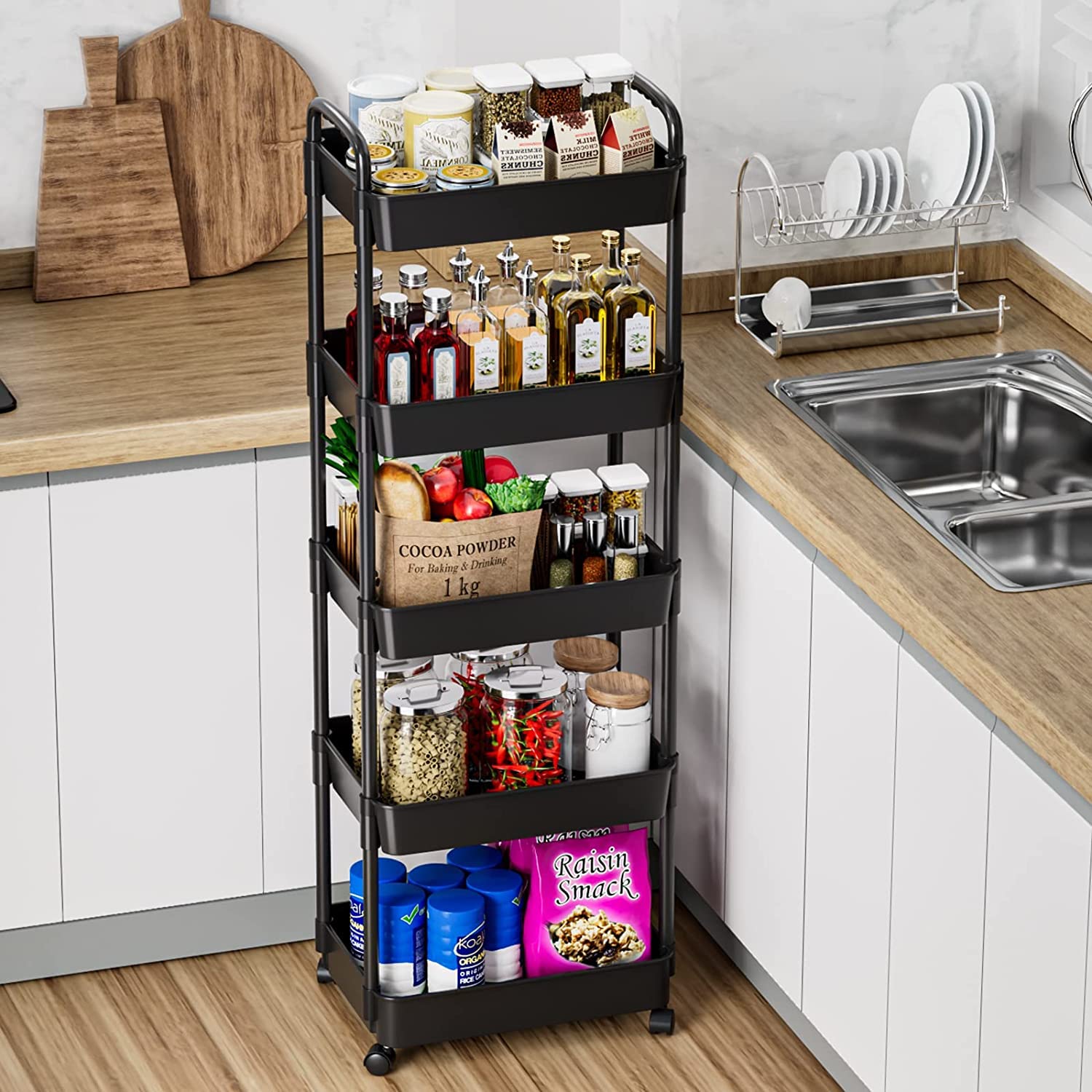 - Original Storage Carts – 5-Tier Utility Cart with Lockable Wheels - Multipurpose Storage and Craft Organizer Cart for Bathroom, Laundry, Kitchen - Book, Art, Makeup, Diaper Cart in Black by 7 code