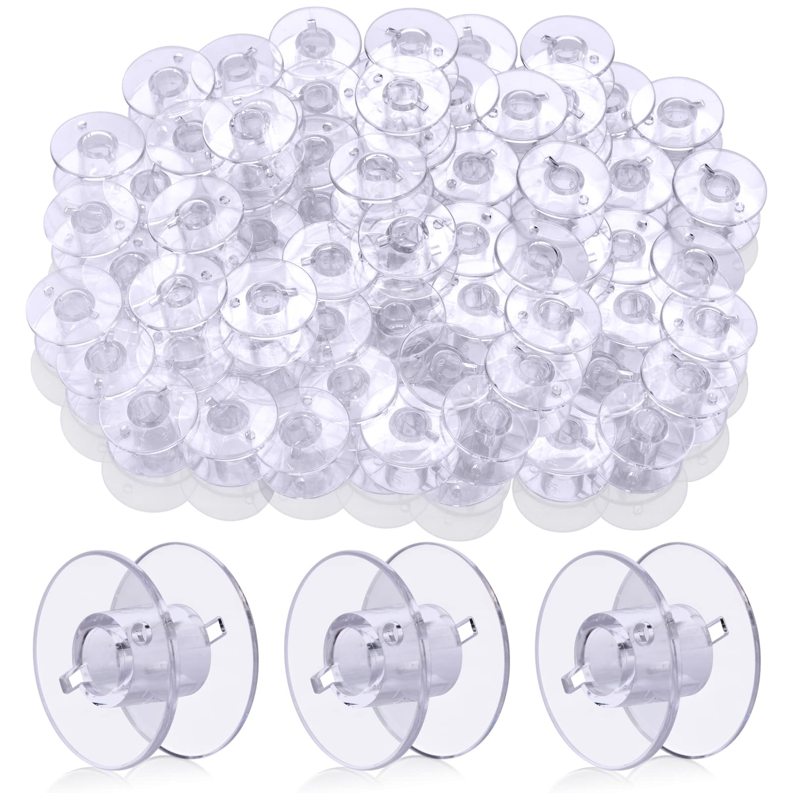 - 1. 50 pcs premium bobbins(Exclude thread): The size (diameter 0.78 * height 0.39) inches. Our sewing machine bobbins are crafted from high-quality plastic, ensuring transparency; durability; and reusability