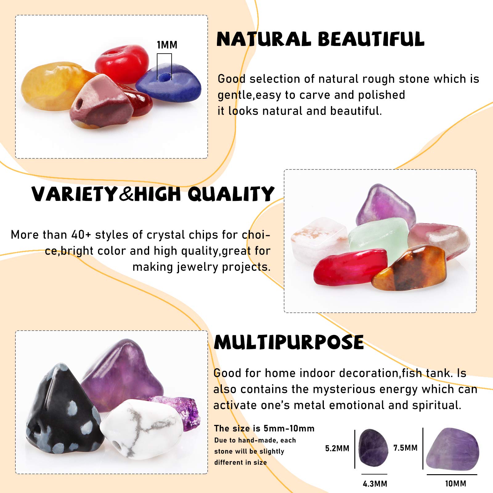 - Colorful Crystal Beads : YUGDRUZY Factory Outlet offer more than 40 colors chip beads for you to choose, such as rose quartz, tiger eye stone, green aventurine, speckled stone, red coral, white crystal, red agate, etc. You can choose the color you want