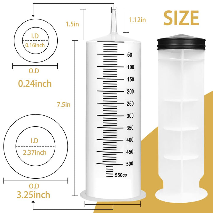 - Food Grade Syringe: Each syringe is individually sealed, clean, safe and sterile. This big syringe is ideal for measuring and dispensing fluid, chemical, essential oil, inks, lubricant, sealant, glue, adhesives, solvents, garden watering succulents, lab experiments.