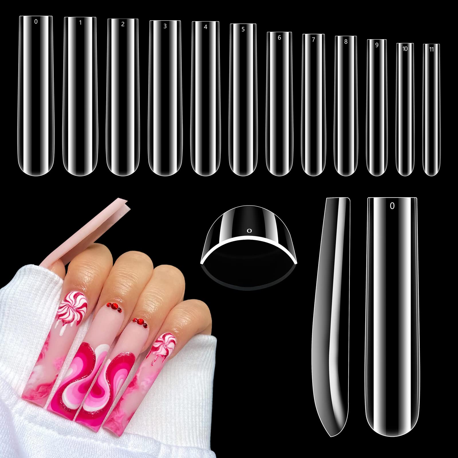 - Original Artificial Nails – 504Pcs Clear Nail Tips for Acrylic Nails Professional, XXL Extra Long Tapered Square Acrylic Nail Tips, Full Cover Fake Nails False Nails, Nail Extension for Manicure Salon Home DIY Nail Art 12 Sizes by Quaferen