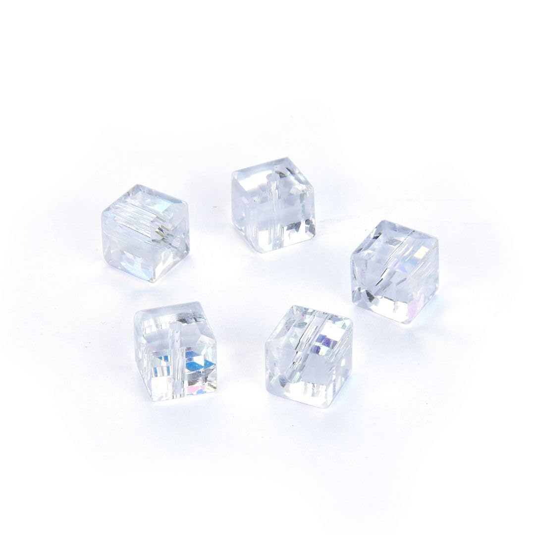 - Original Beads & Bead Assortments – 50pcs Austrian 8mm Faceted Loose Cube Crystal Beads Clear AB Compatible with Swarovski Crystals Preciosa 5601 SSC802 by Adabele