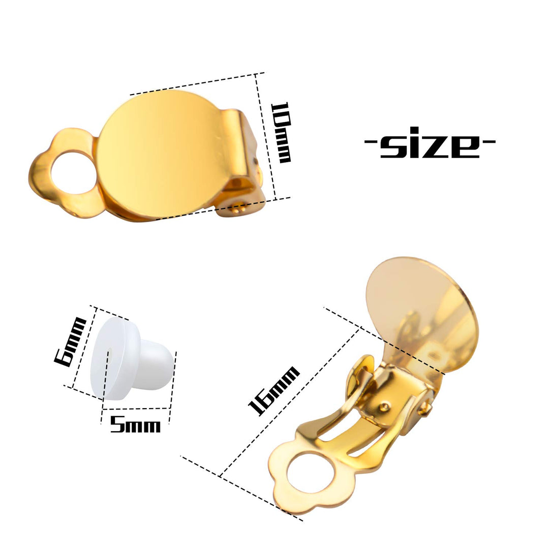 - Original – 50pcs Round Flat Back Tray Earring Clips Non Pierced Earring Components and 50pcs Soft Cushion for DIY Earrings Jewelry Making,Gold by BronaGrand