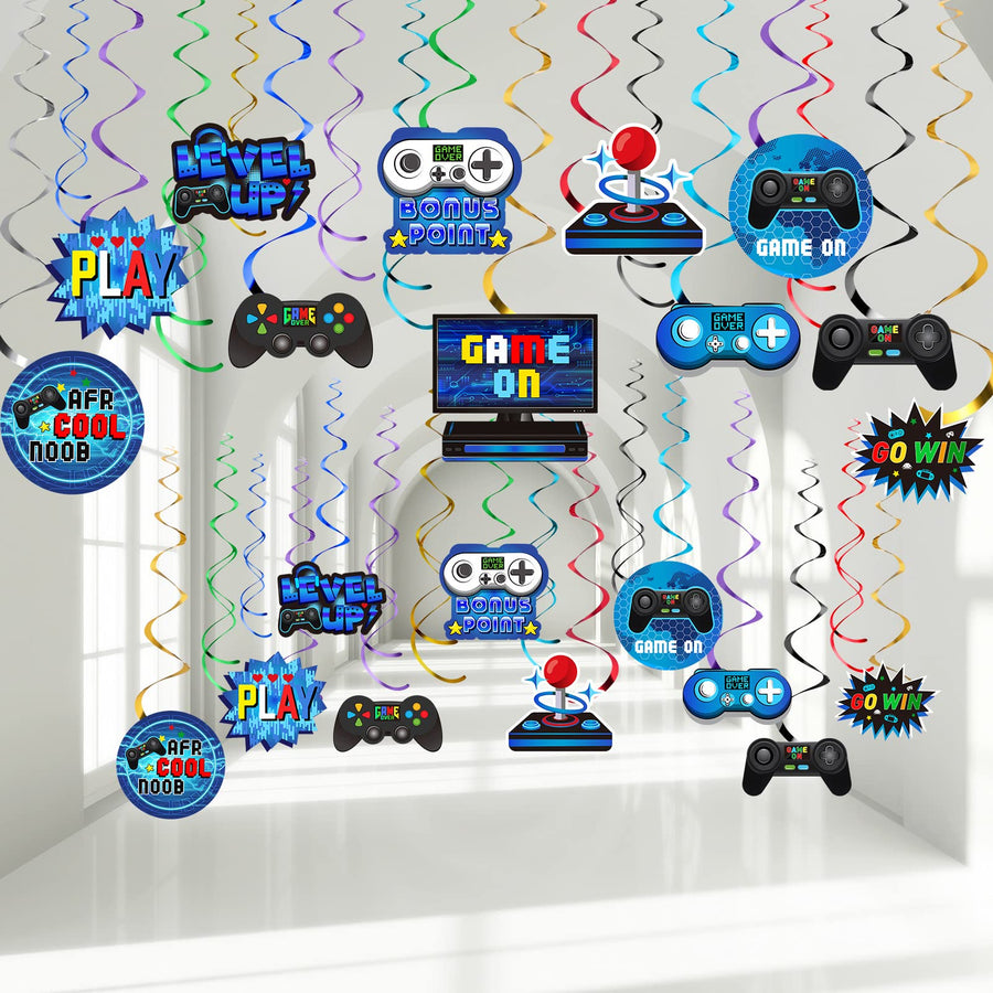 - Original Multi-Item Party Favor Packs – 51 Pieces Video Game Hanging Swirl Decorations Supplies, Video Game Birthday Decorations Game Party Theme Decorations Foil Ceiling Streamers for Gamer Video Game Birthday Party Supplies(Blue) by Sumind