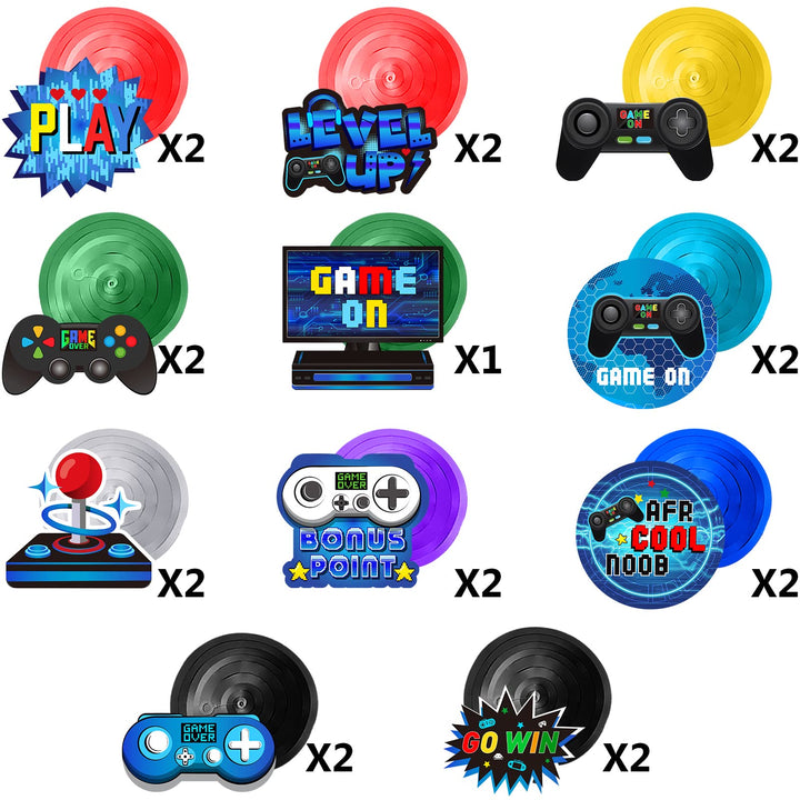 - Suitable size: the size of each video game party cutout card is approx. 18 x 18 cm/ 7.09 x 7.09 inches, each swirl can extend to approx. 30 - 38 inches in length; You can hang these video game decorations anywhere as you like with the hook on the top, they can create a strong game atmosphere for your party