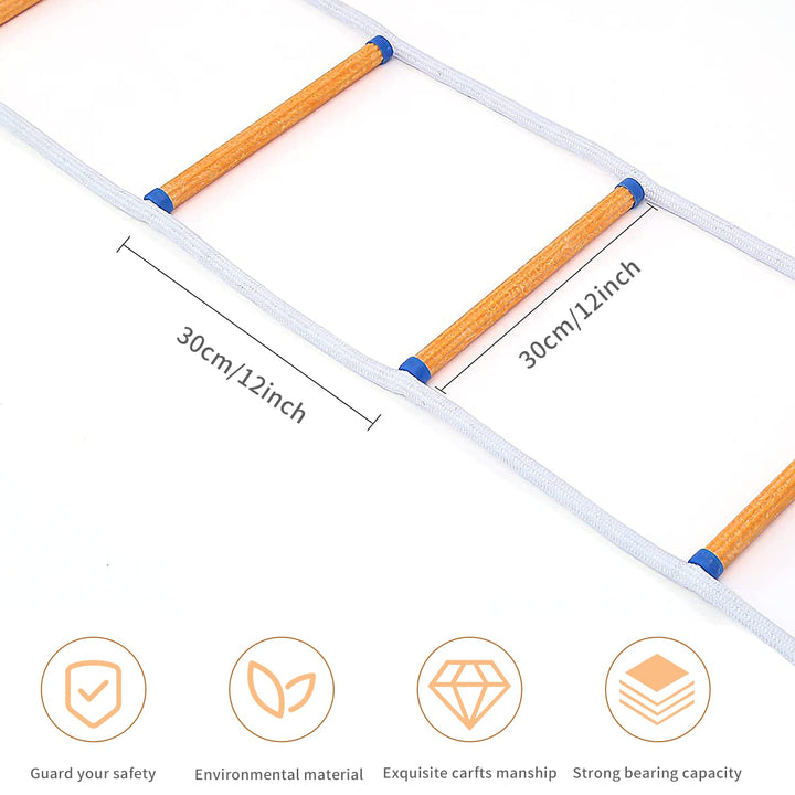 - Solid & Stable DesignThis fire escape ladder has multi-function. It is made from premium quality thick rope up to 2000-pound breaking strength and is equipped with full 11KN carabiners making it a must-have for homeschool office that wants to stay safe.