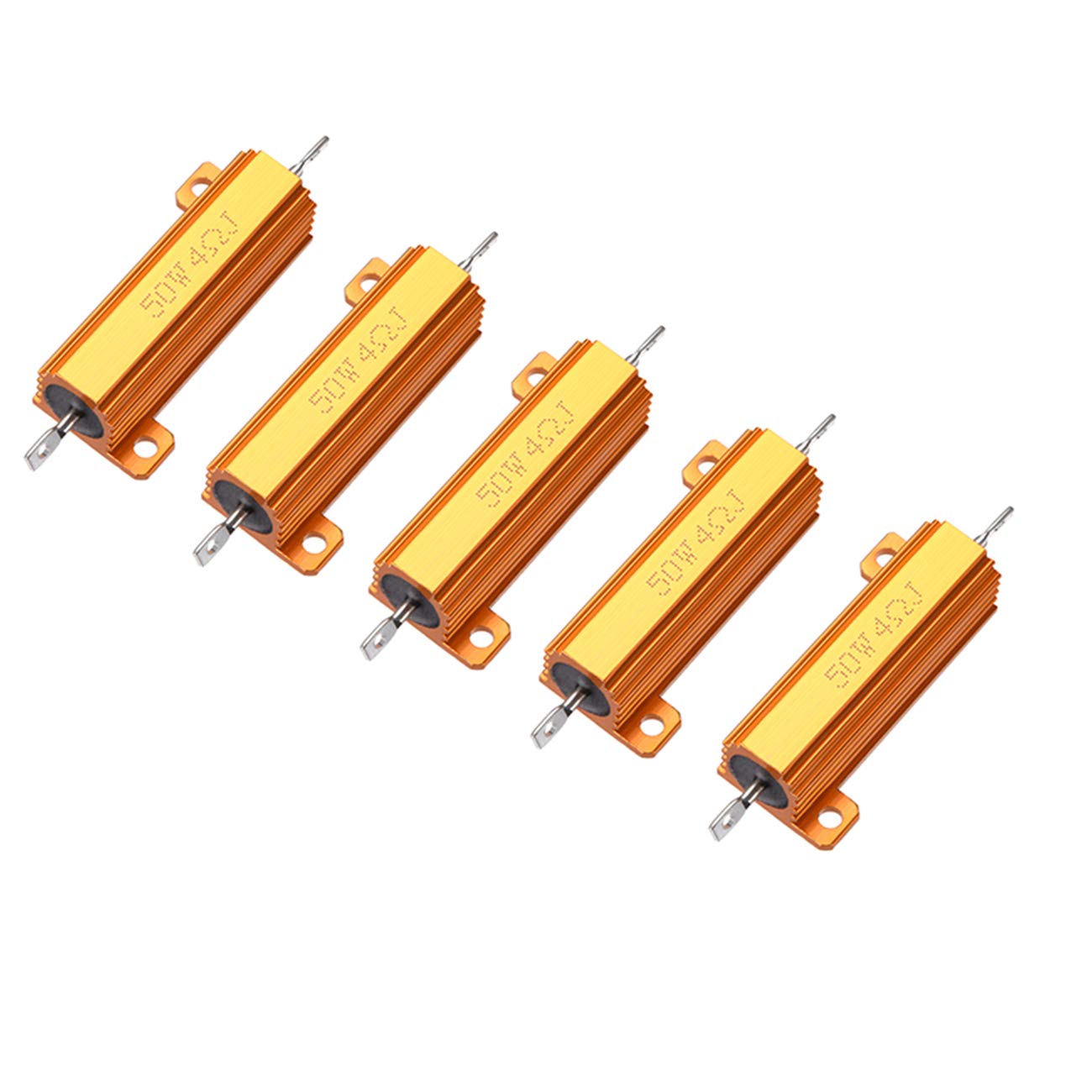 - Original Single Resistors – 5Pcs 50W 4 OHM Aluminum Housed Wire Wound Resistor Gold Tone by HL Electronic Business