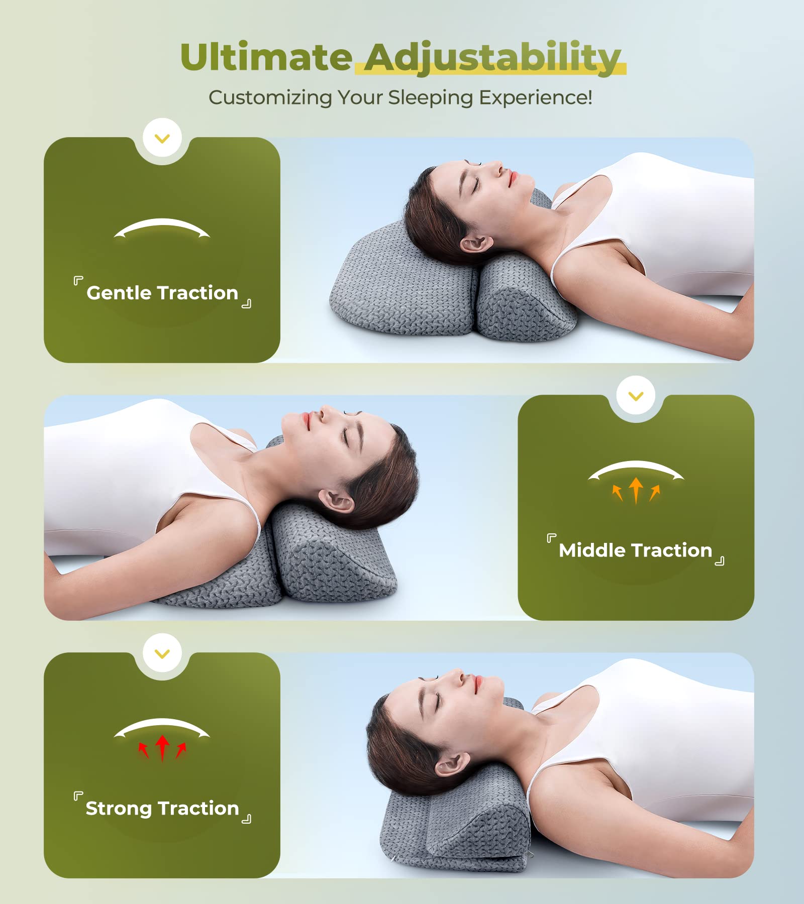 - Original Neck & Cervical Pillows – 6-in-1 Adjustable Cervical Neck Pillows for Pain Relief Sleeping, Memory Foam Bolster Pillows with Detachable Pad, Neck Support Pillow for Body Lumbar Knee Leg Back Orthopedic Neck Roll (Grey) by Demelon