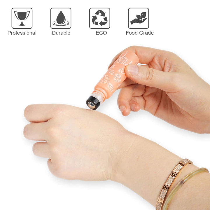 - Capacity: 10ml.Package contains:6 pcs different Type Frosted roller bottle+1 funnel+1 plastic pipettes.