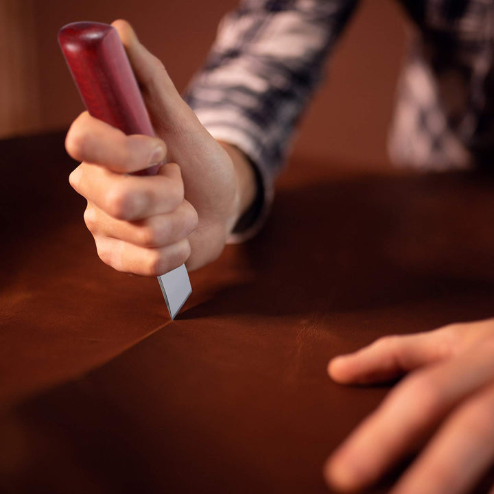 - Original Leathercraft Accessories – 6 Pcs Leather Knife Set, Including 4 Leather Edge Bevelers, Leather Cutting Knife Skiving Knife, Sandalwood Edge Leather Burnisher Tool for DIY Leather Craft,1.5 mm 1.2 mm 1.0 mm 0.8 mm by Honoson