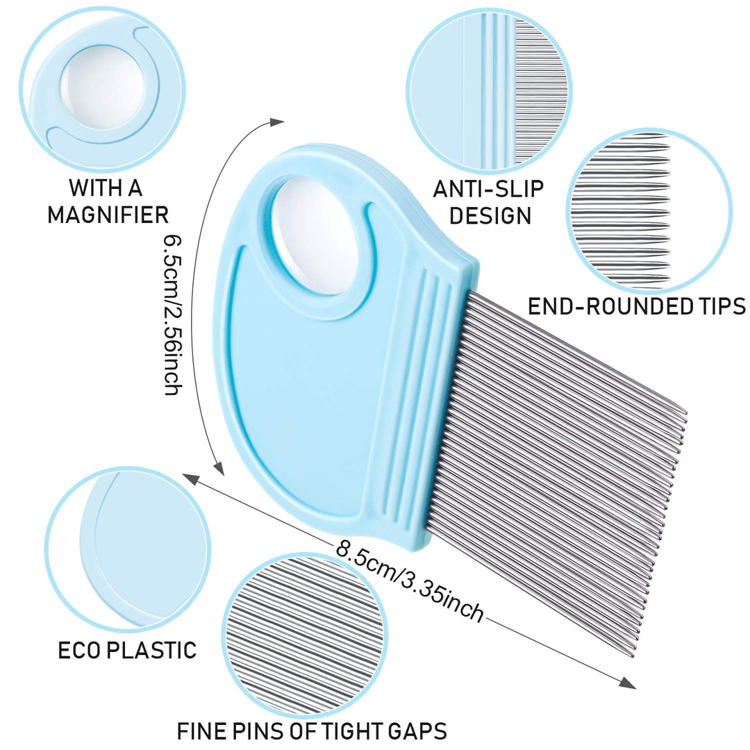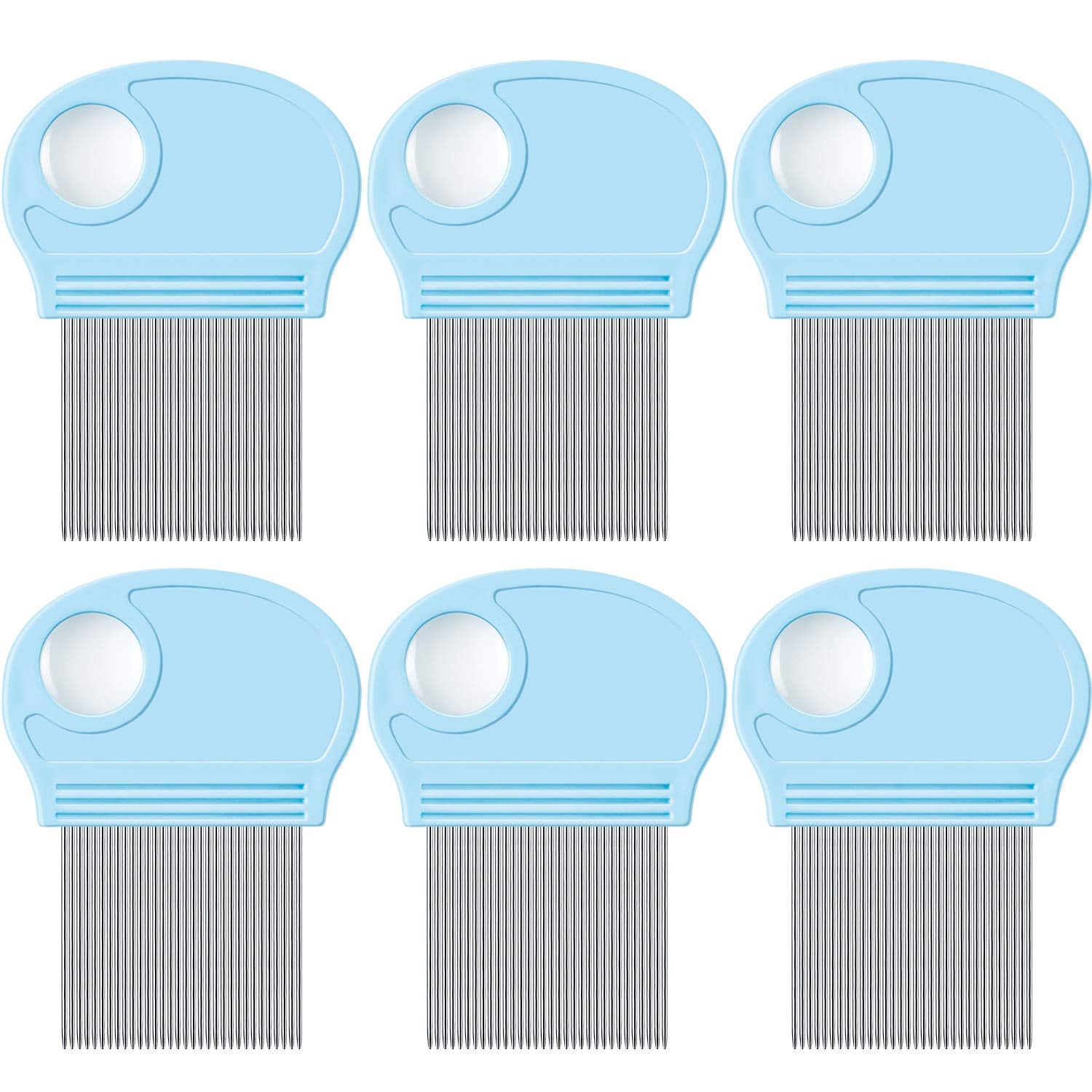 - Original Combs – 6 Pieces Head Lice Remover Nit Removal Hair Comb with Magnifier, Fine Metal Teeth Tool for Dogs Cats Pet Human Grooming and Removing Dandruff Flakes/Lice Eggs, Sky Blue by Boao