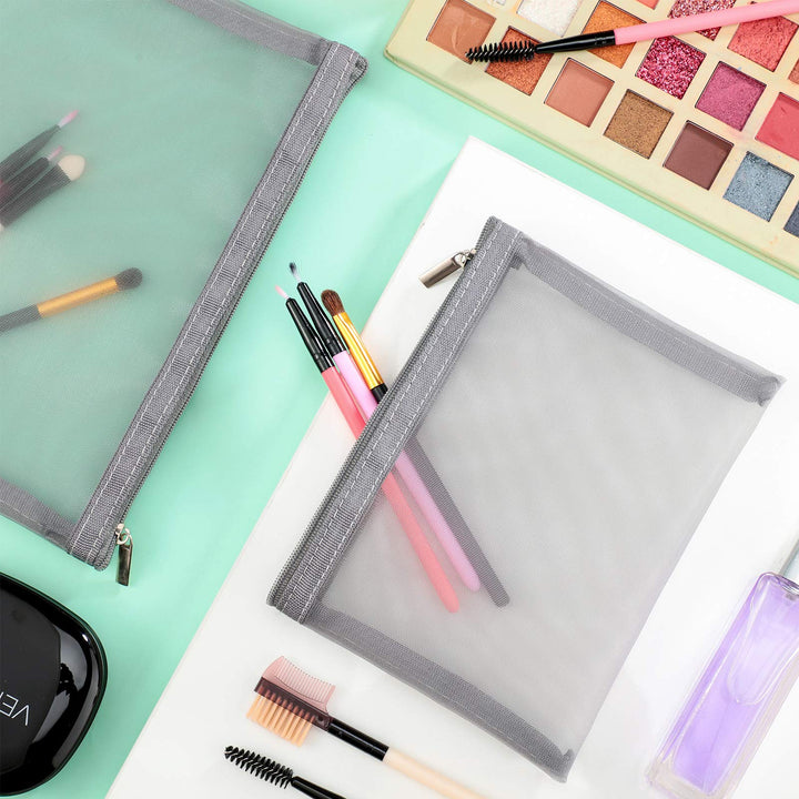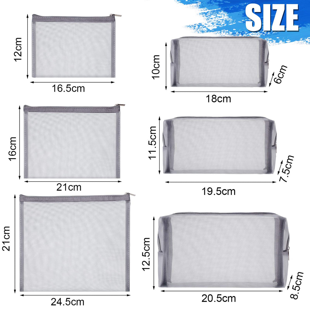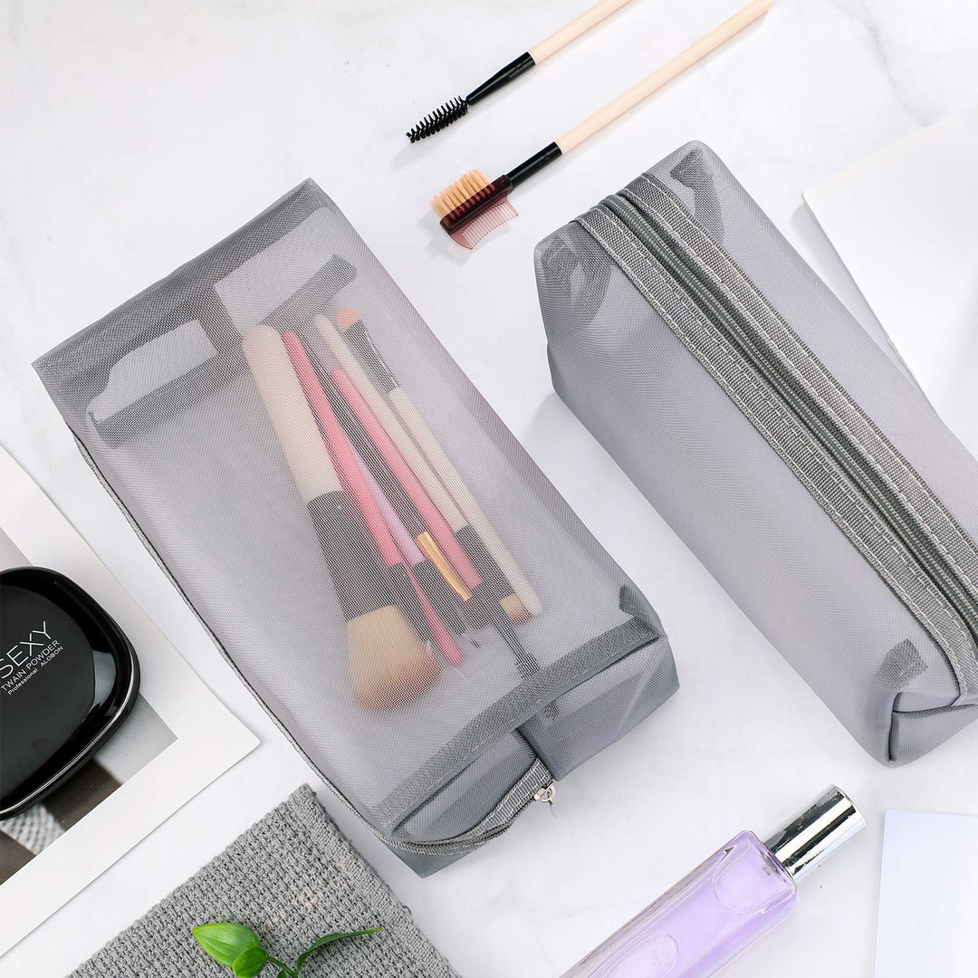 - Original Cosmetic Bags – 6 Pieces Mesh Makeup Bags Mesh Cosmetic Bag Portable Travel Organizing Zipper Pouch Toiletries Makeup Pouches for Home Office Travel Accessories (Gray) by Boao