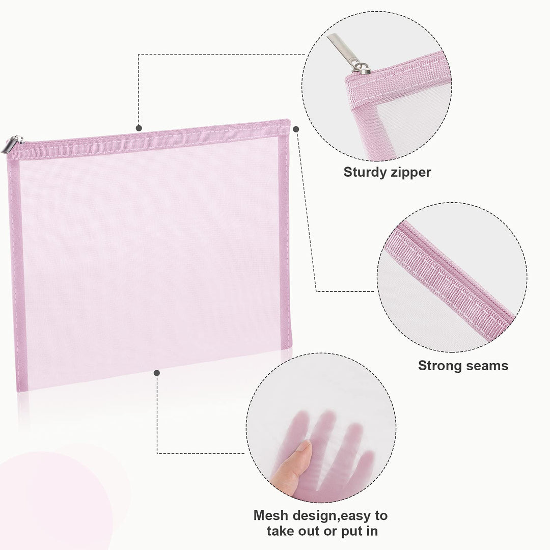 - Original Cosmetic Bags – 6 Pieces Mesh Makeup Bags Mesh Cosmetic Bag Portable Travel Organizing Zipper Pouch Toiletries Makeup Pouches for Home Office Travel Accessories (Light Pink) by Boao
