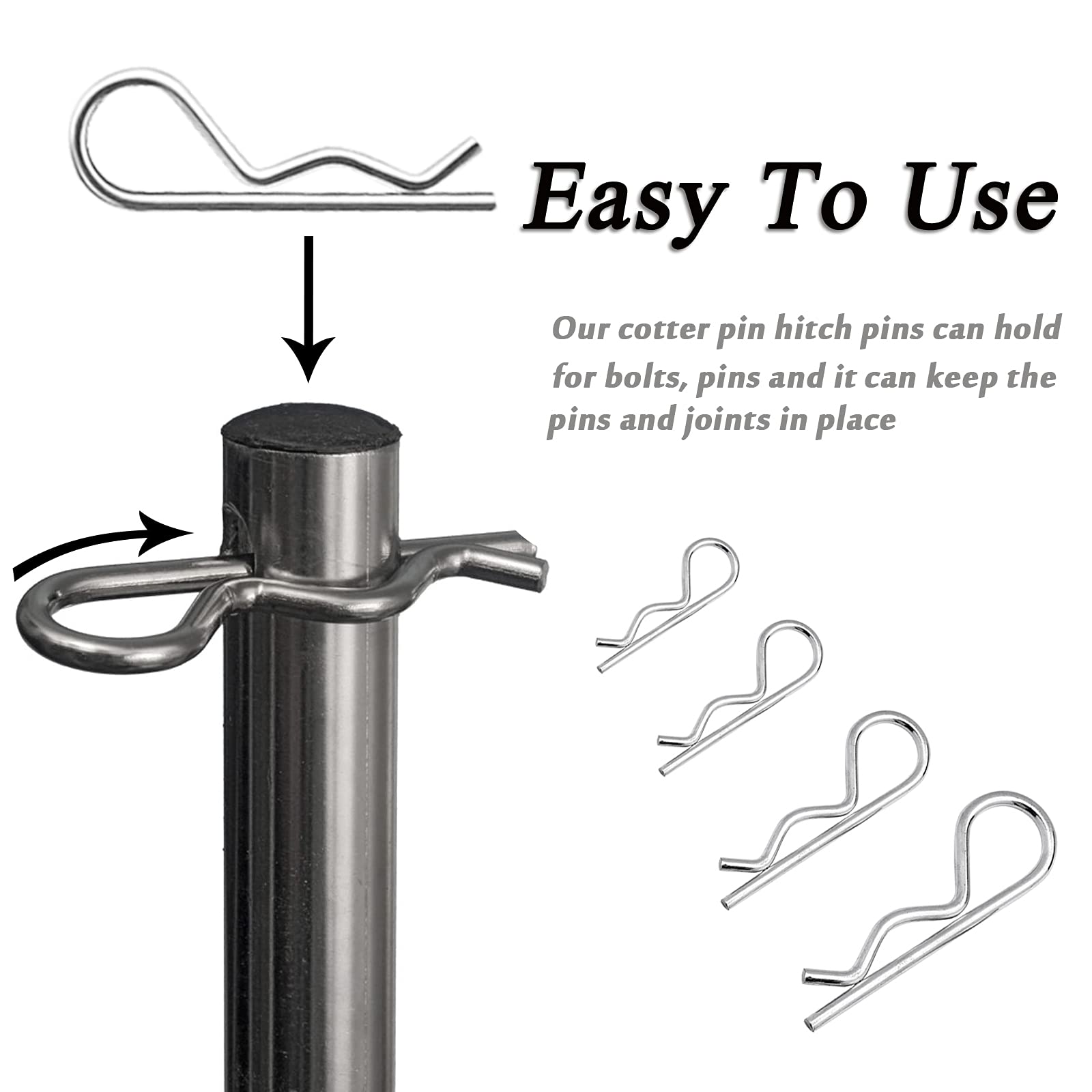 - Cotter Pin Features: Our hair pin style design gives fast and secure hold for bolts. easy to install and remove