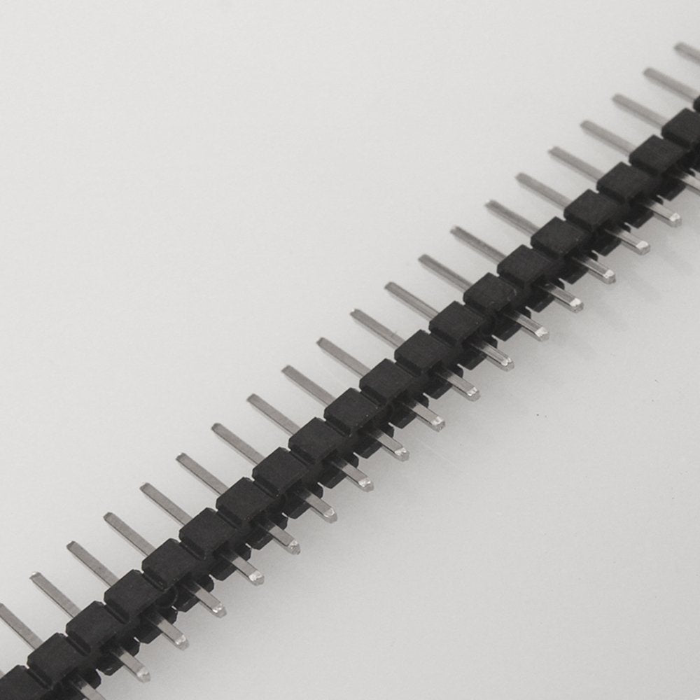 - Break Away Headers: Pcb pin head is a straight single row connector, the size of pin pitch is 2.54mm/0.1 inch and there are totally 40 number of pins on each.
