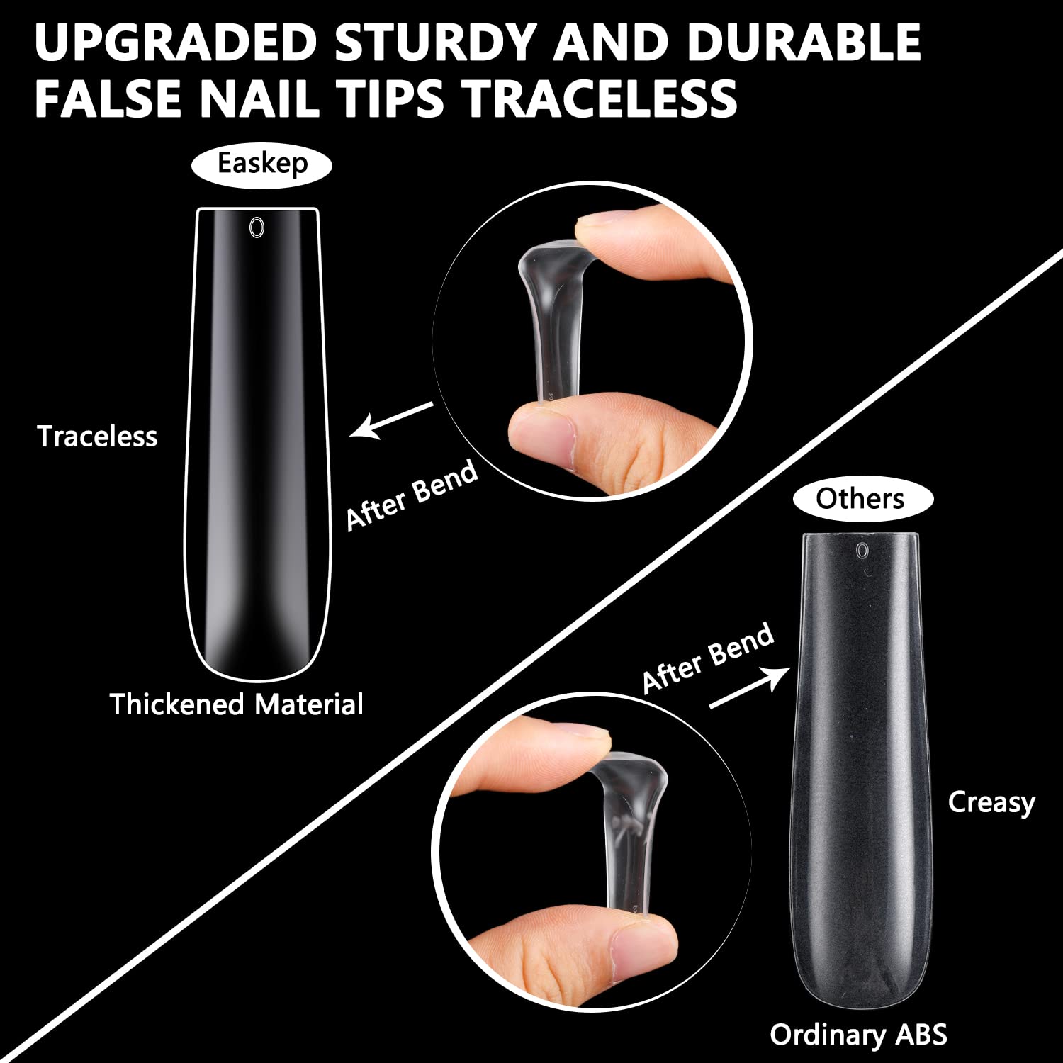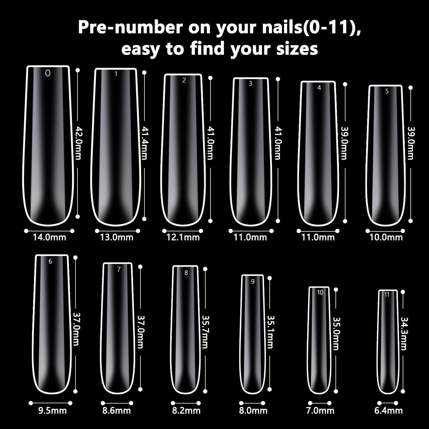 - Original Artificial Nails – 600Pcs Extra Long Nail Tips, Clear XXL Straight Tapered Square Full Cover Nail Tips, Press On False Nail Tips for Salons and DIY Nail Art at Home (Style-3-600PCS) by INENK