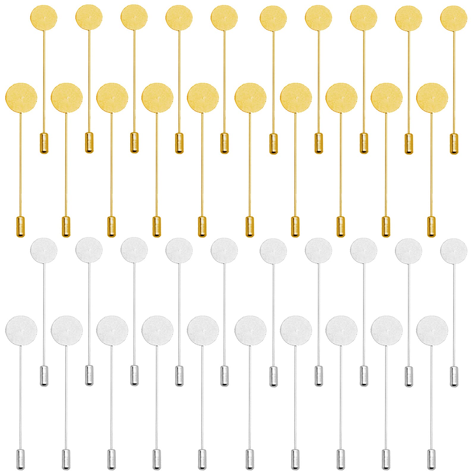 - Original Safety Pins – 60Pcs Flat Round Tray Lapel Pin, 2 Sizes Stainless Steel Safety Stick Pins Round Blank Tray Brooch Pins Needle Suit Tie Hat Pin Scarf Badge for DIY Costume Jewelry Making Accessories(Gold,Silver) by Ximalun