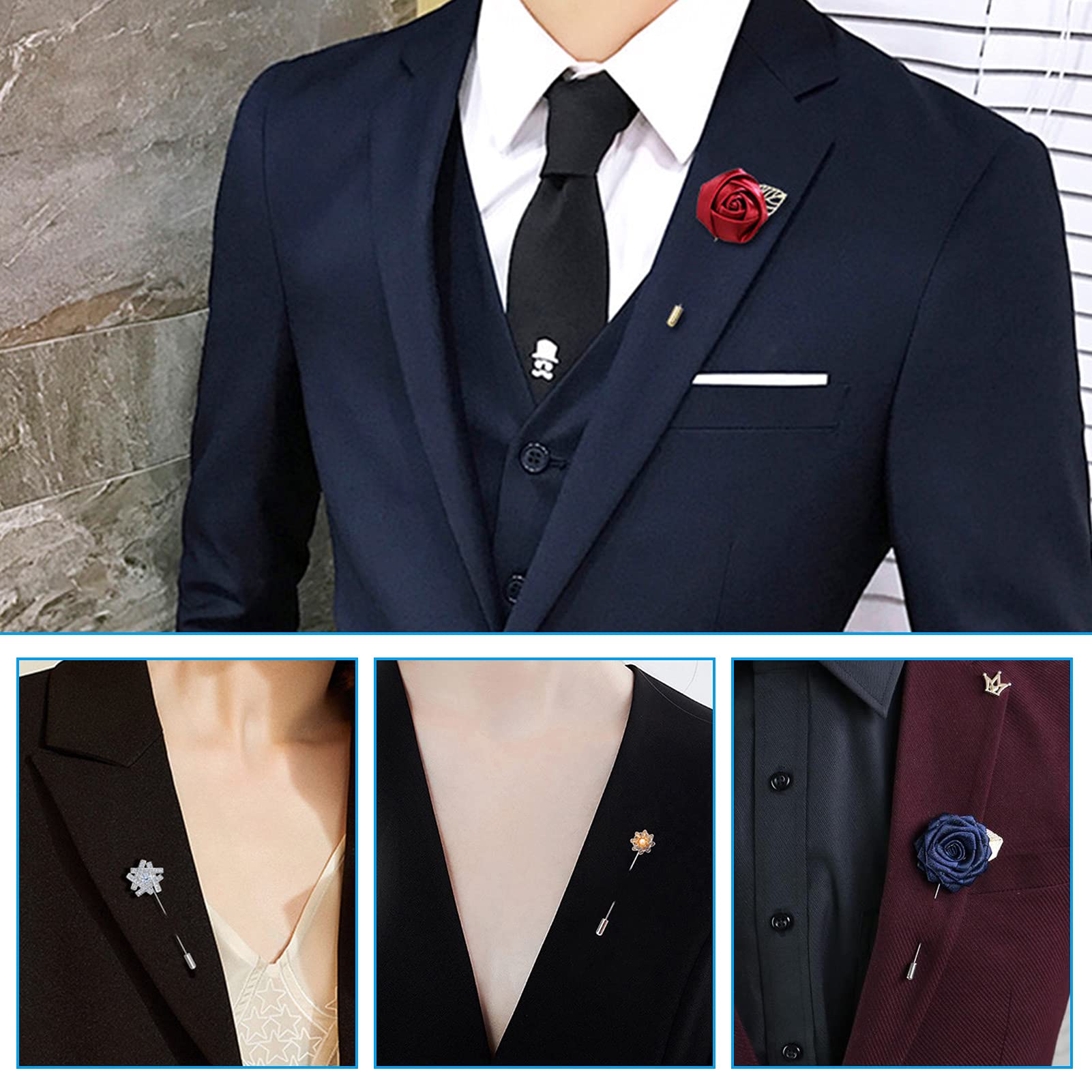 - DURABLE MATERIAL:The lapel stick pin is made of high-quality metal materials. The lapel pin is long and strong, not rusty, not easy to break, not easy to bend, and durable. The metal brooch also has a strong cover to prevent the pin from slipping off during wearing.