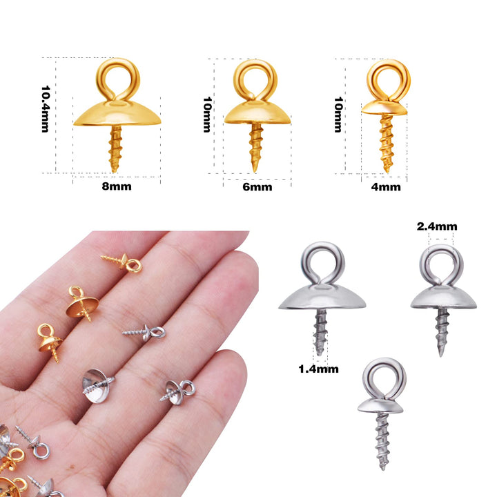 - Original Charms – 60pcs Stainless Steel Cup Pearl Screw Eye Pin Bail Peg Pendants Eye Pin Bail Pegs with Cap for Half Drilled Beads Charms Jewelry Earrings Making,4mm/6mm/8mm by BronaGrand