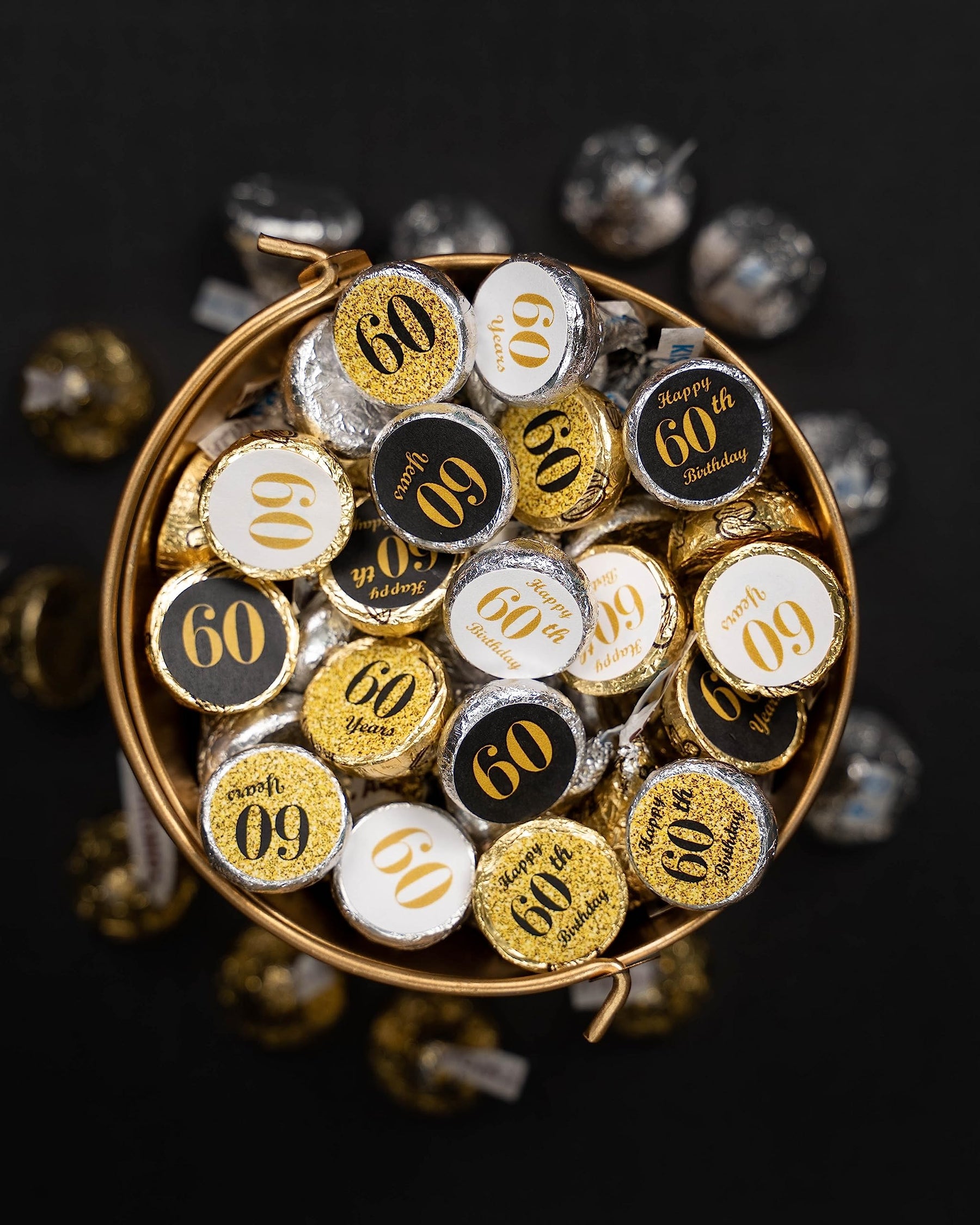 - Original All-Purpose Labels – 60th Birthday Kisses Stickers, (Set of 324) Chocolate Drops Labels Stickers for 60th Birthday, Hershey's Kisses Party Favors Decor, 9 Designs (36 Stickers of Each) by RokAPary