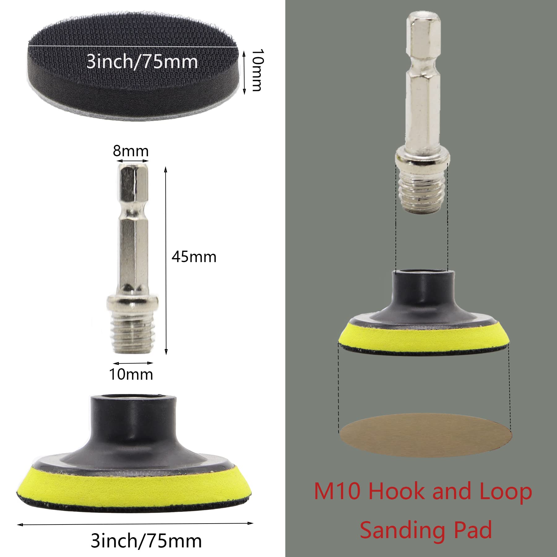- Practical Drill Sanding Attachment Soft foam buffering pad that reduces shake is ideal for uneven surface polishing. Add support to sanding pad, protects against damage to the backing pad, and is convenient for replacing discs. M10 shank backing pad suitable for most kinds of rotary tools, such as electric drills, die grinders and air grinders, etc.