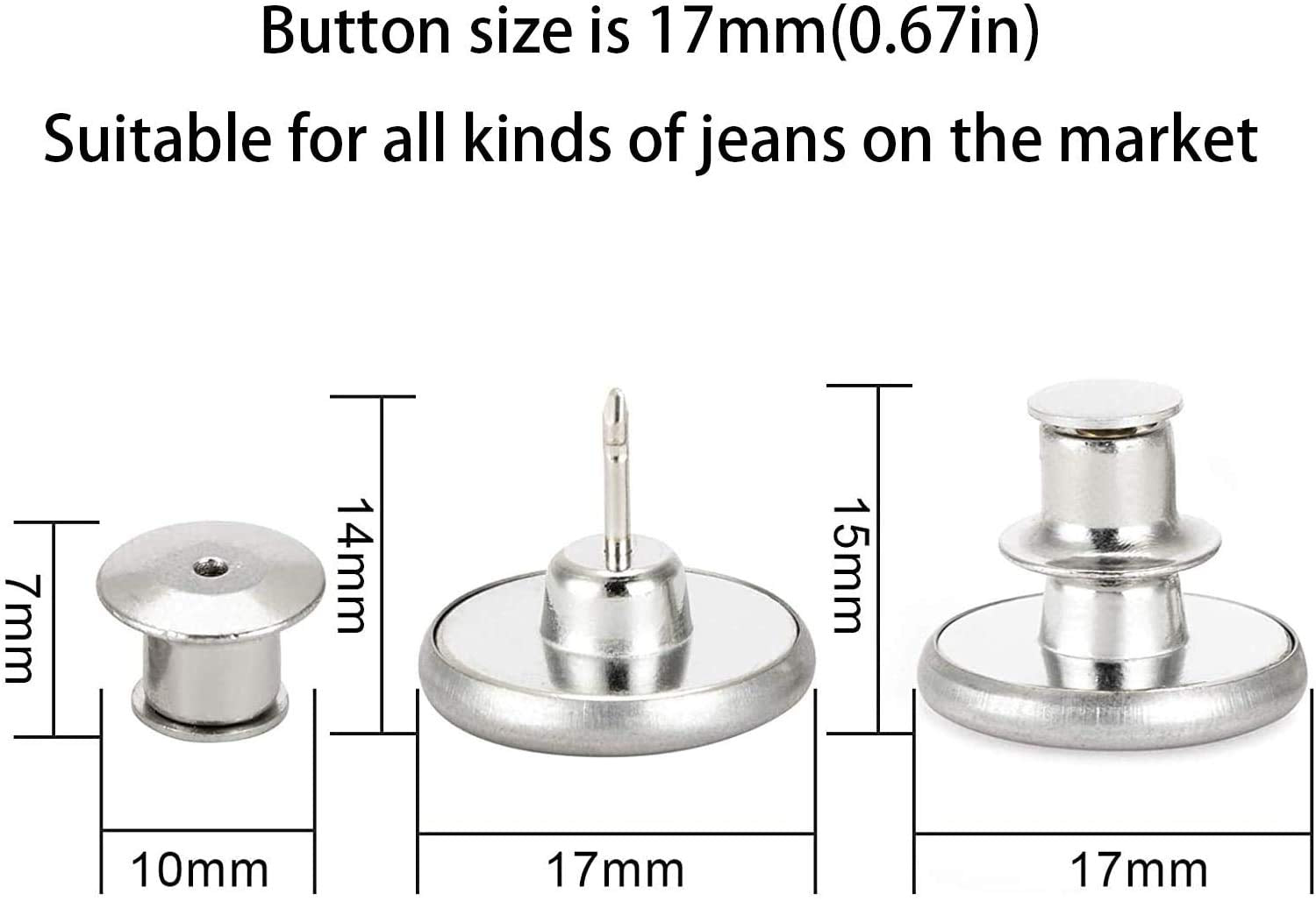 - Removable and Reusable Jeans Button Pin--The clever built-in spring allows a button to have a detachable precision structure, enabling reusable use pants button. It’s also a excellent replacements for missing button.