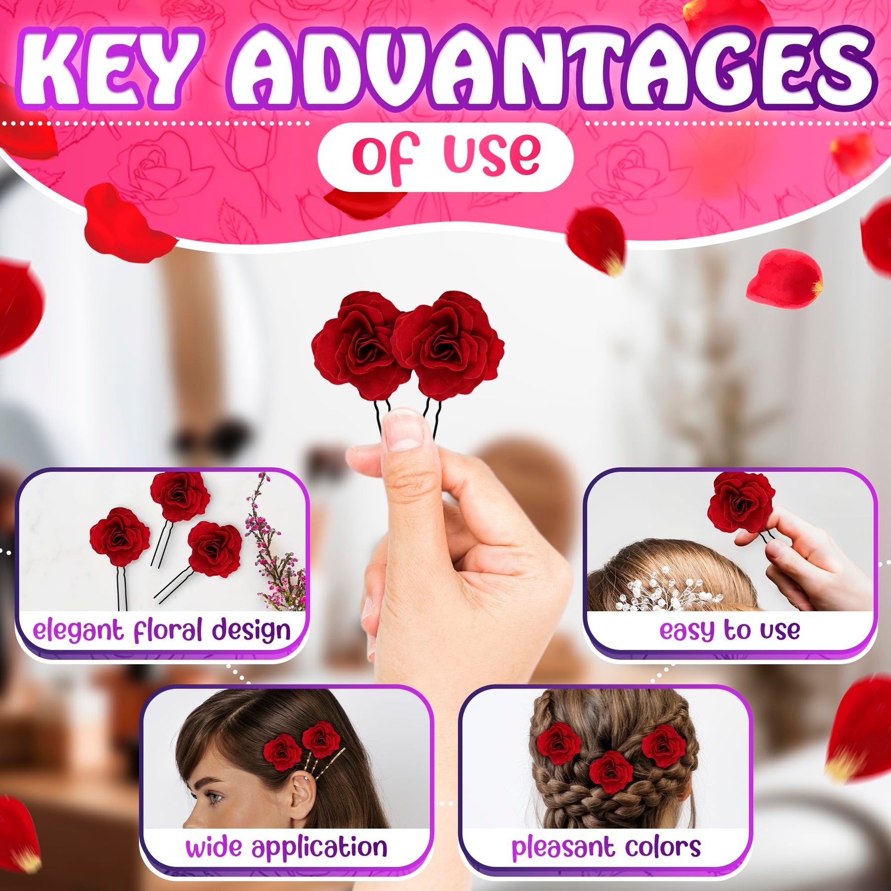 - Original Categories – Buorsa 6Pack Elegant Red Rose Bridal Hair Clips Wedding Women and Girls Hair Accessories Bridesmaids Headpiece by KETAR