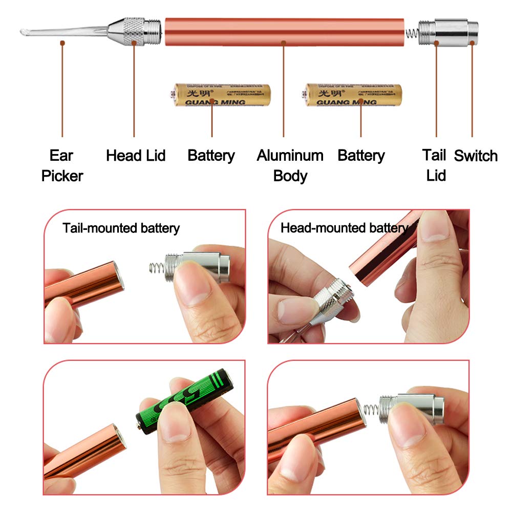 - LED Flashlight Design- The biggest advantage of this ear pick kit is that you can illuminate your ear canal to ensure visibility. You can easily see all the ear wax and remove it properly. Safe and comfort, suitable for all ages, especially for children and Seniors.