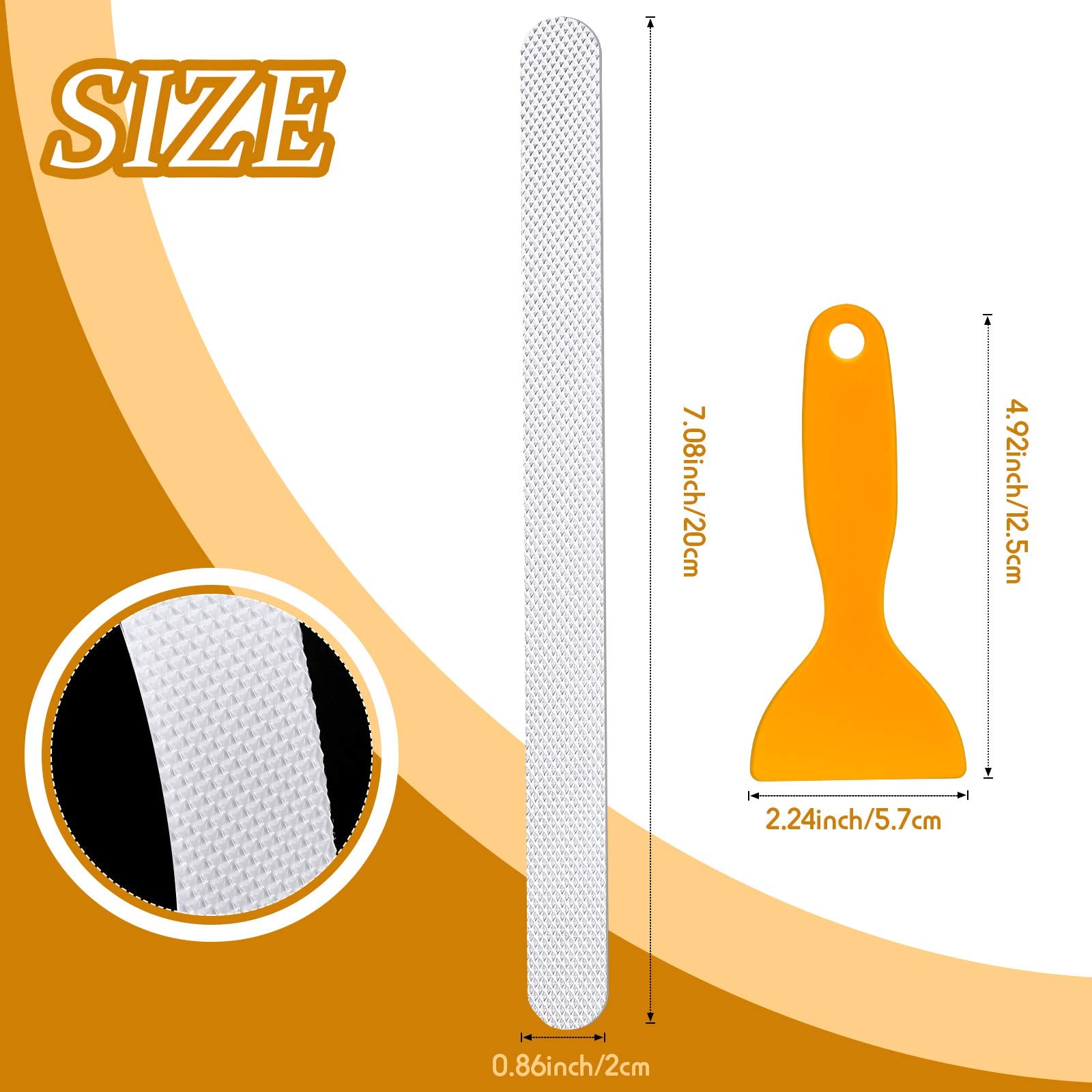 - Package contains: you will receive 72 pieces anti slip shower stickers that measure approx. 7.9 x 0.8 inch/ 20 x 2 cm and 1 piece silicone scraper in total, good combination and enough quantity to meet your daily use and replacement