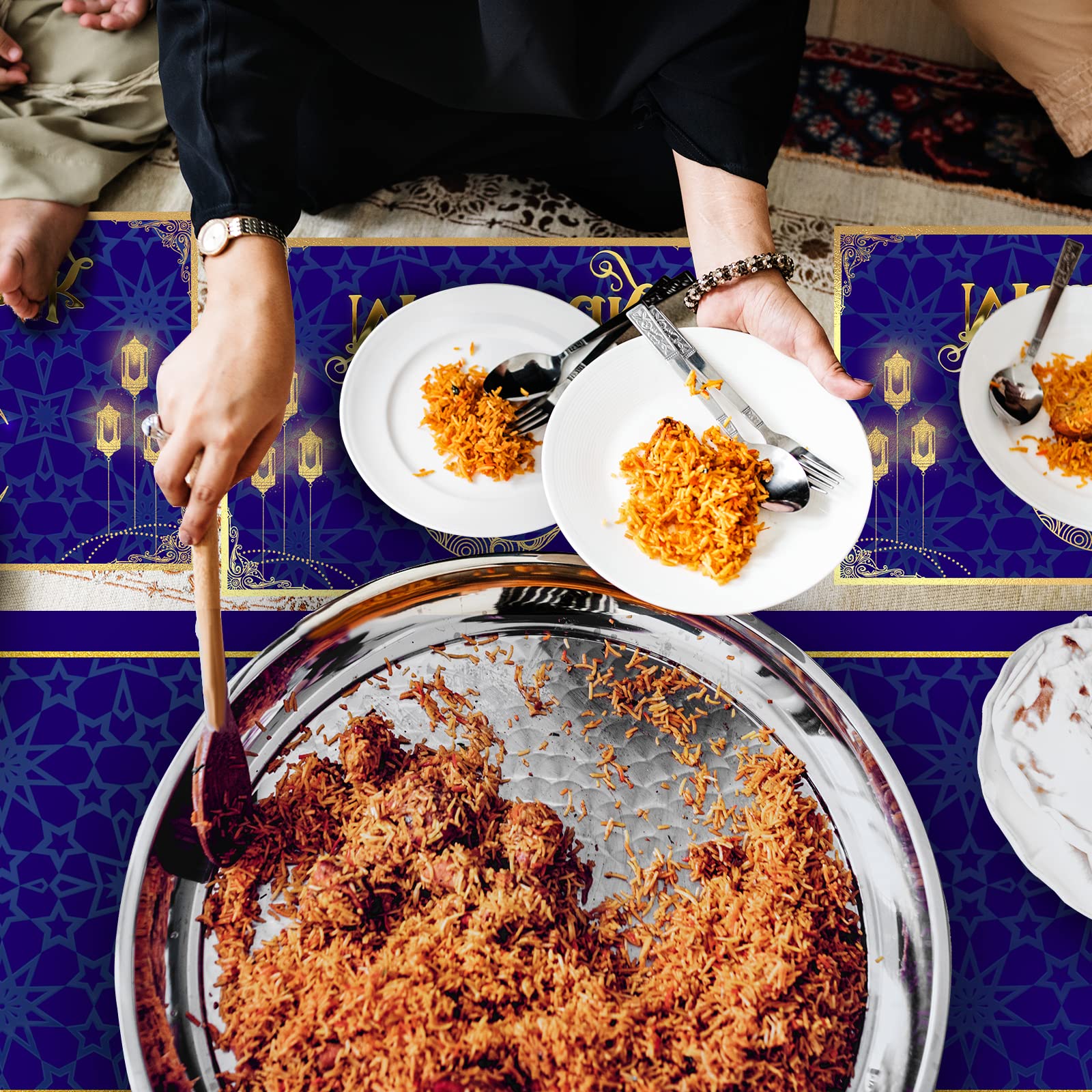 - Original – 7PCS Eid Mubarak Table Runner and Placemats Ramadan Table Runner Table Mats Golden Star Moon Lantern Ramadan Decor Sets Eid Al-Fitr Ramadan Mubarak Party Home Dinning Room Table Decorations by HOMSHIAM