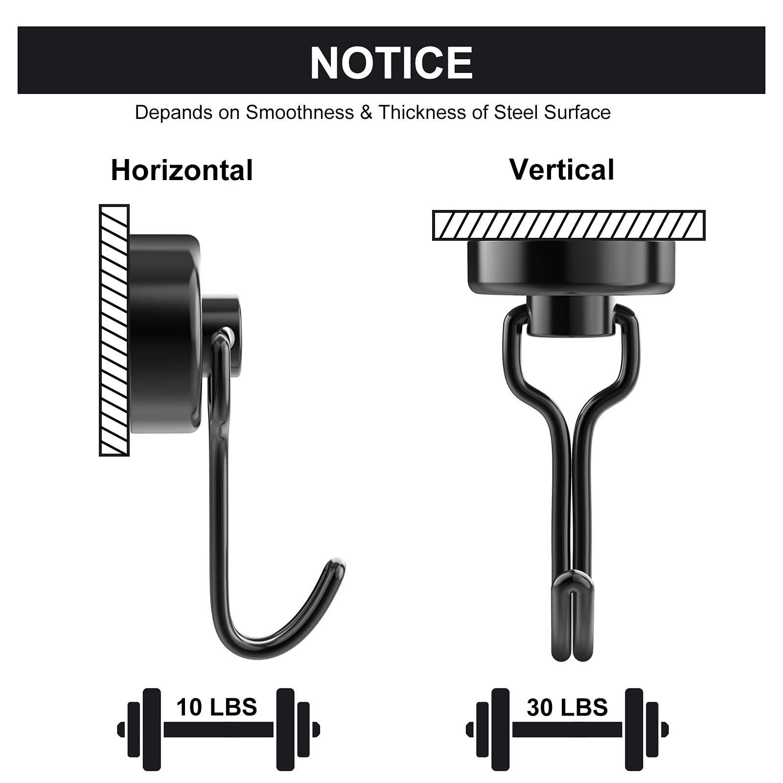 - Original Magnetic Hooks – 8 Pack Magnetic Hooks Heavy Duty for Hanging, Strong Neodymium Magnet Hook with Scratch-Resistant Base, Swivel Hanger Utility Hooks for Refrigerator, Cruise Cabins, Wall, Grill, Key, Kitchen, Black by Vayugo