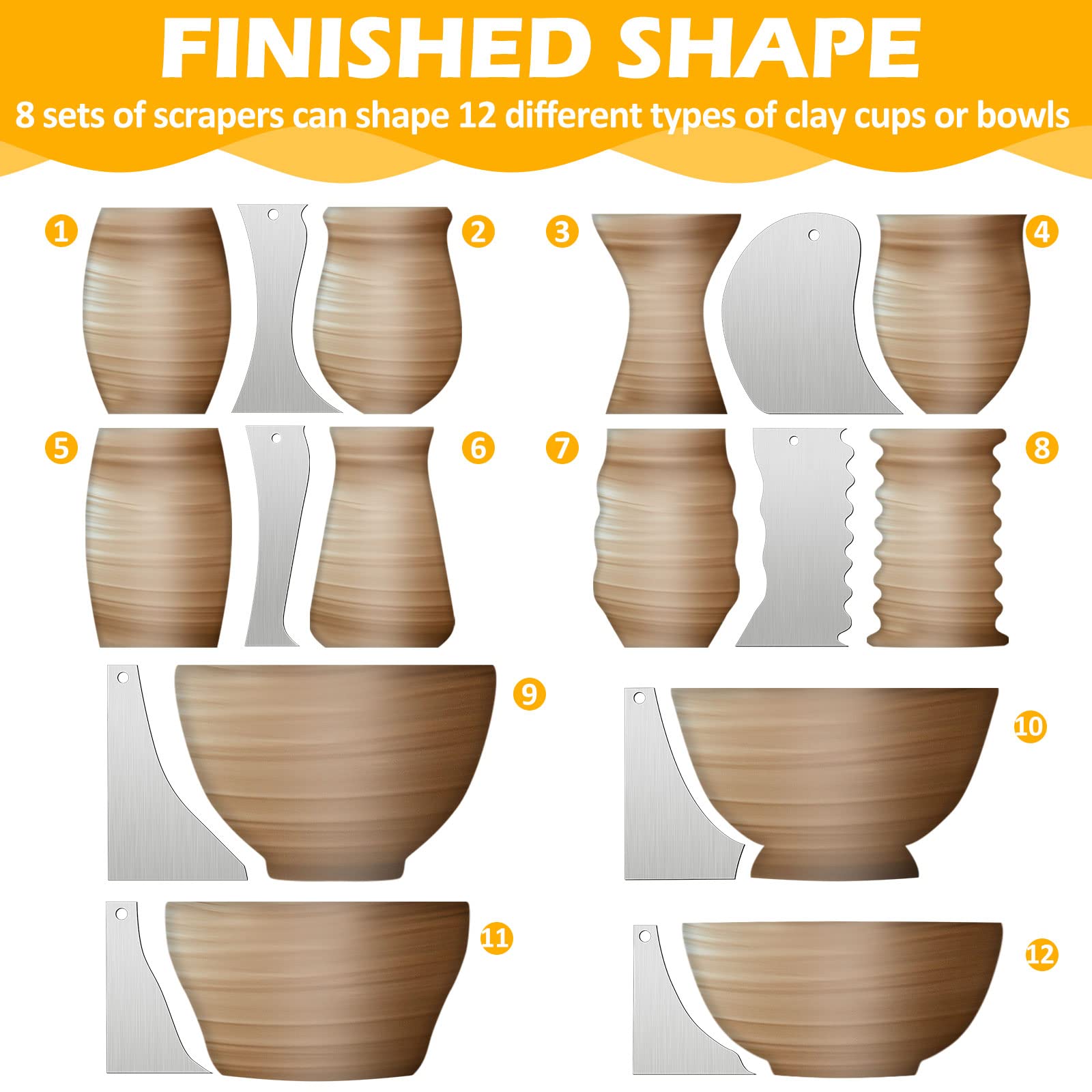 - More Shape Options for You: we provide you with 8 different shapes of ceramics scoring tools, and they have many kinds of radians, so that you can choose them according to your own preference, enough to make various mugs or bowels