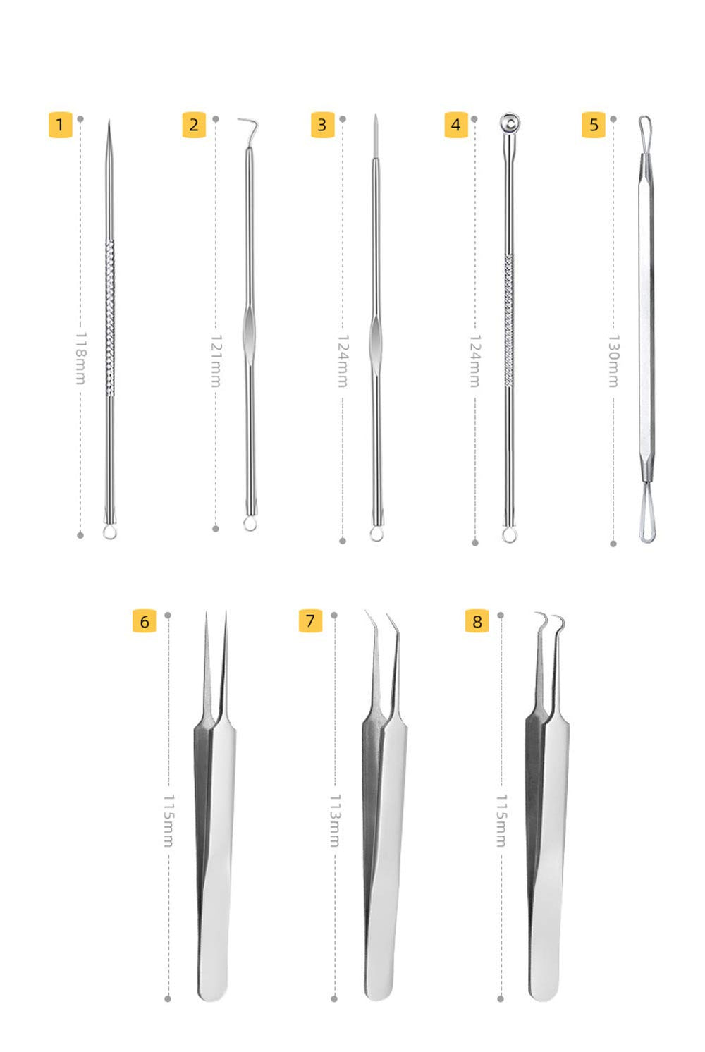 - Blackhead Remover Kit: 8 different style blackhead remover kit to help remove blackheads, acne and various blemishes effectively, keep your face smooth and clean