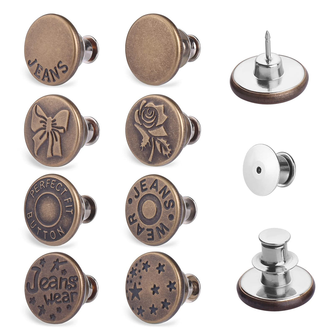 - Original Buttons – 8 Sets Button Pins, Nailing-Free Jean Buttons, 8 Styles Button Pins for Jeans No Sew, Metal Buttons Adds Or Reduces an Inch to Any Pants Waist in Seconds by CampTek