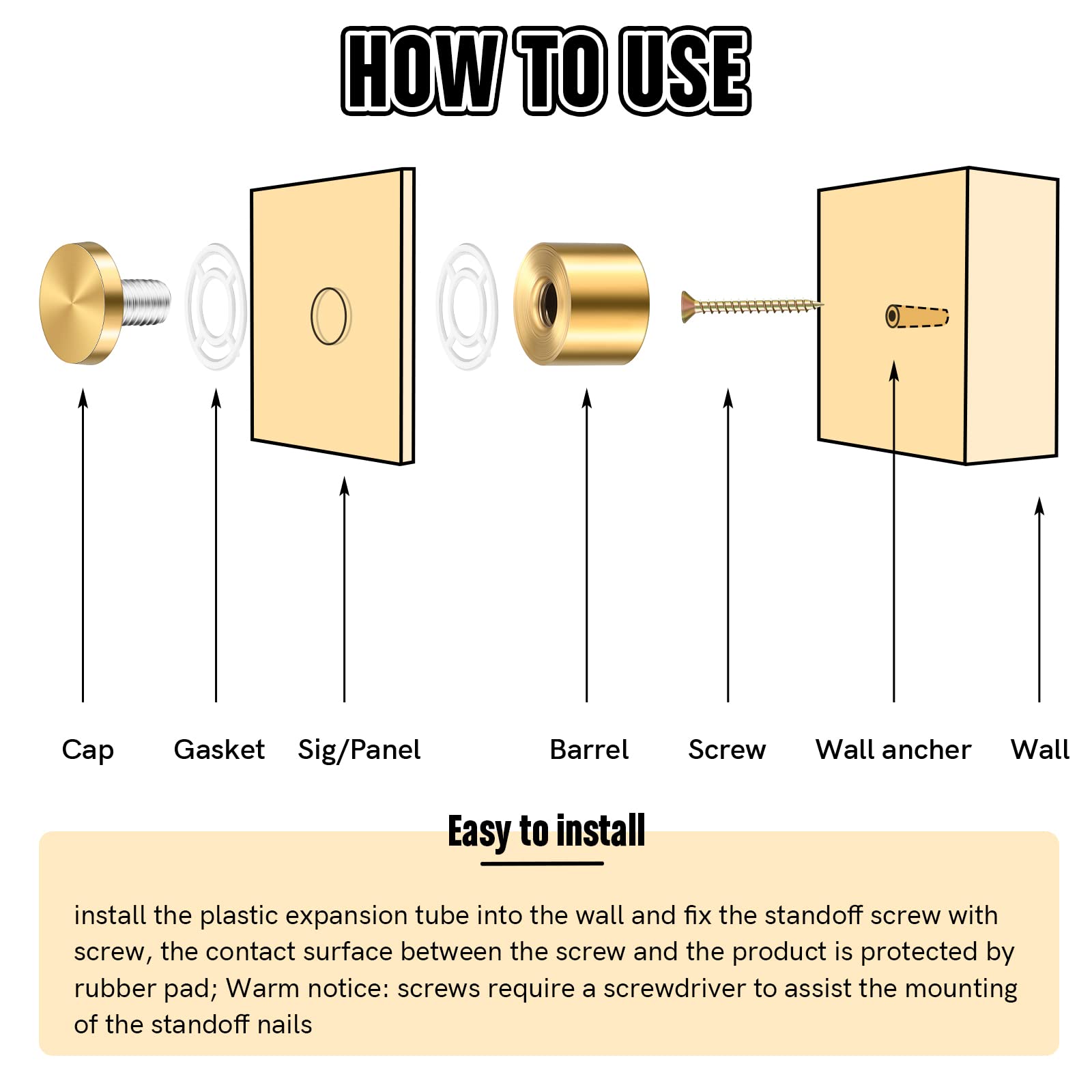 - Nice combination: you will receive 8 stainless steel standoff screws sets, including 8 standoff screws, 8 screws, 8 Expansion screws, nice combination and sufficient quantity can meet your demands and replacements