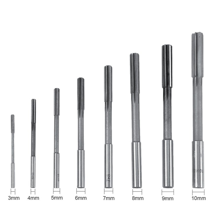 - Reamer Sizes: Our chucking reamer set includes sizes 3mm, 4mm, 5mm, 6mm, 7mm, 8mm, 9mm, and 10mm. They are crafted to H8 tolerance standards.