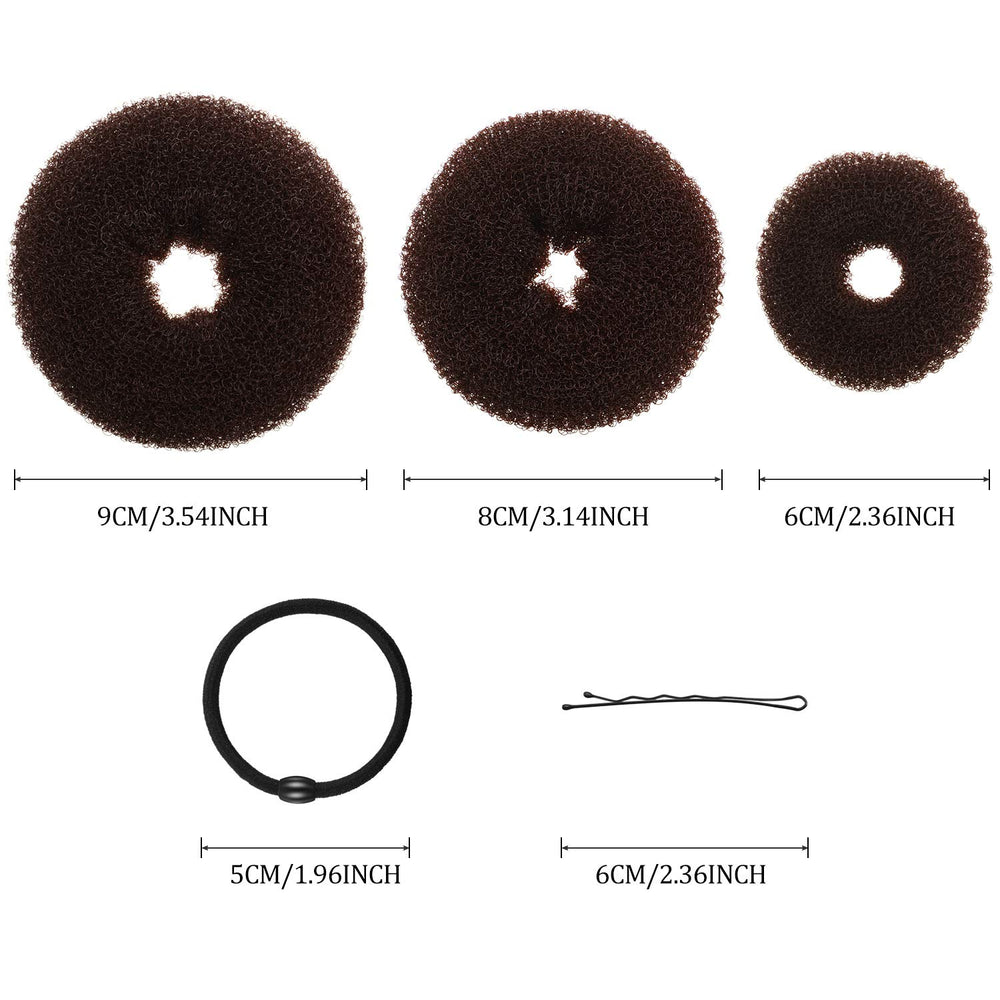 - Hair Bun Maker Set: Package includes 9 pieces black donut bun makers in 3 sizes (large, medium, small), 12 pieces hair elastic bands and 32 pieces bobby pins; Different sizes or different hair styling needs, this set keeps your hair tidy and help you create your hairstyle