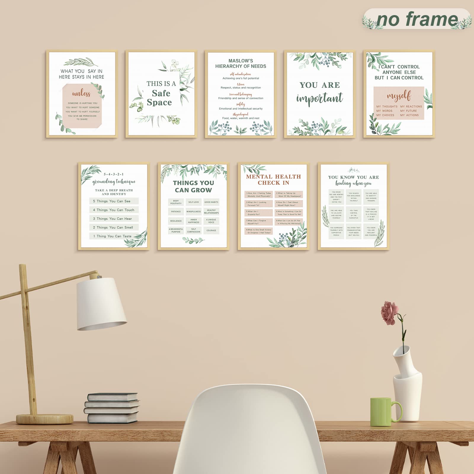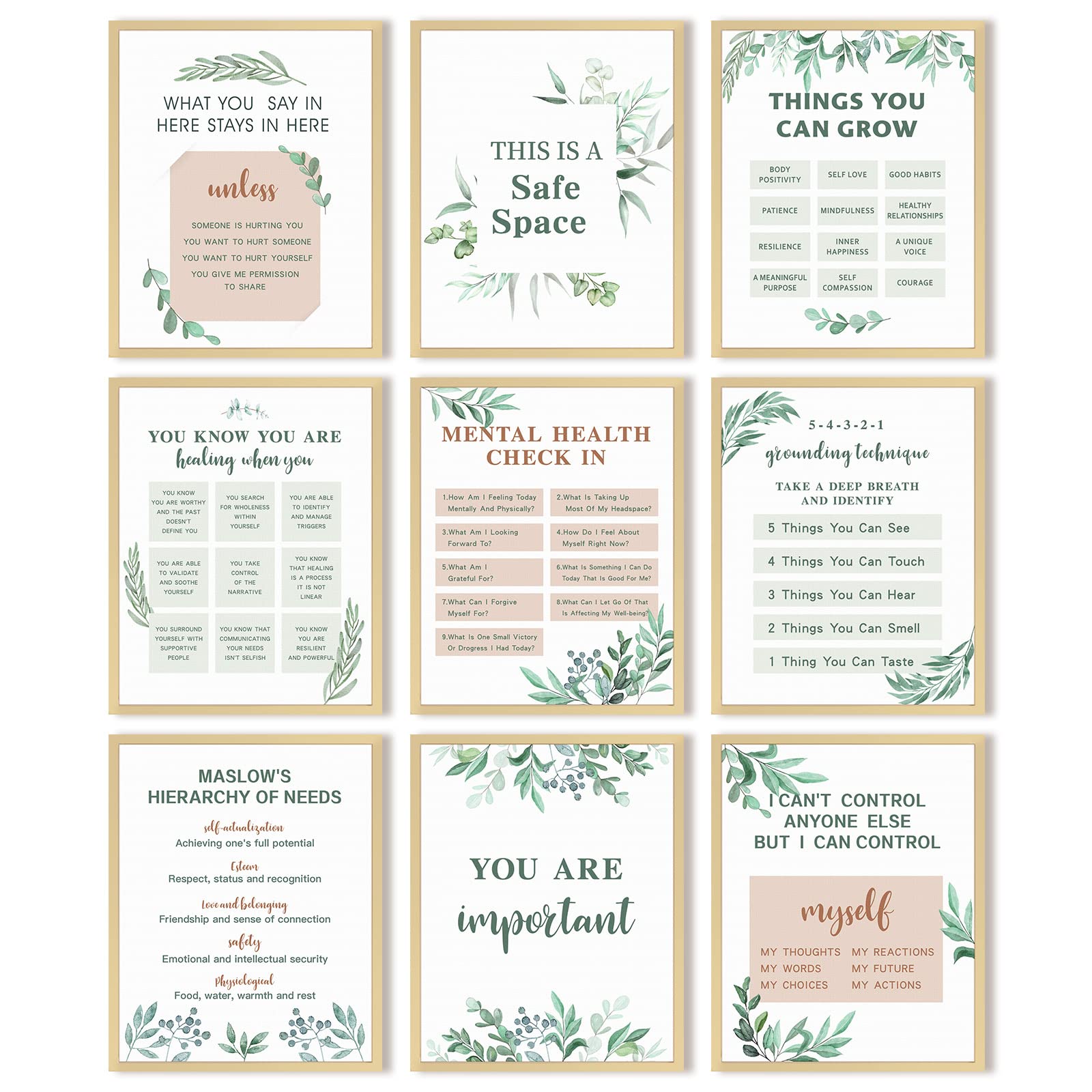 - Original Educational Charts & Posters – 9 Pieces Mental Health Posters Anxiety Therapy Motivational Poster Psychologist Counselor Inspirational Posters Positive Quotes Wall Decor Classroom for Home Office, 8 x 10 Inch(Leaf Style) by Outus
