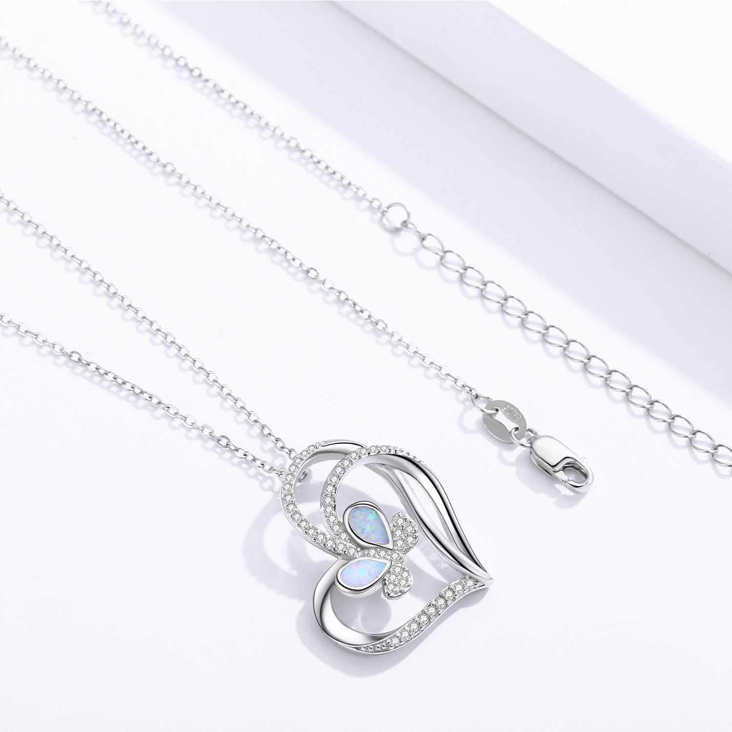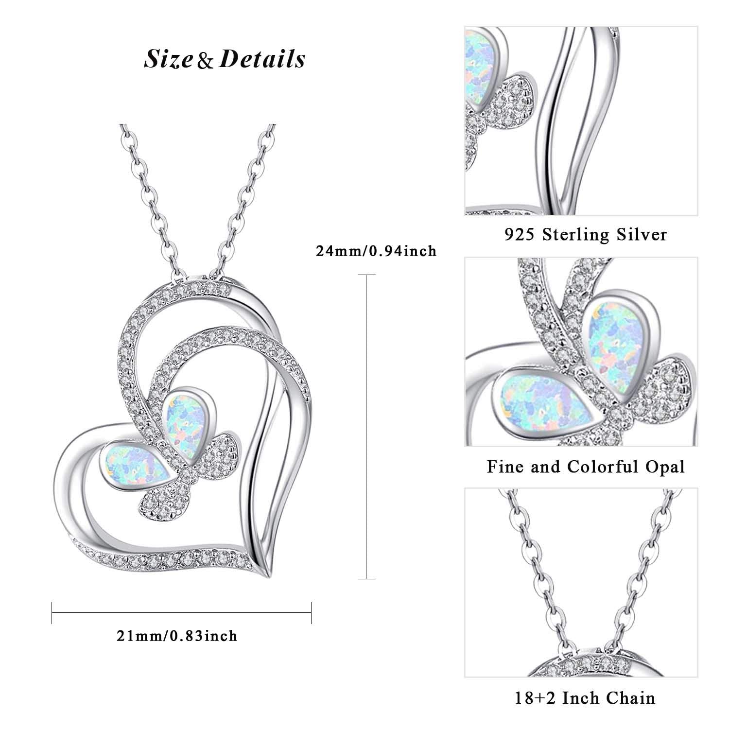 - Original Pendant Necklaces – 925 Sterling Silver with White Opal Butterfly Necklace, Double Heart with Cubic Zircon Butterfly Jewelry Mother Day Gift for Women Girlfriend Daughter with Gift Box (Opal Butterfly Necklace) by Cuoka