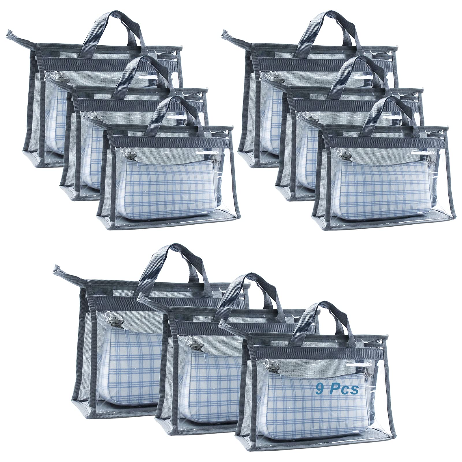 - Original Garment Covers – 9Pcs Clear Handbag Storage Dust Cover Organizer Bags, Transparent Dustproof Purse Protector Storage Bag with Zipper Handles for Closet Shelf-3 Sizes (Grey) by AUHOKY