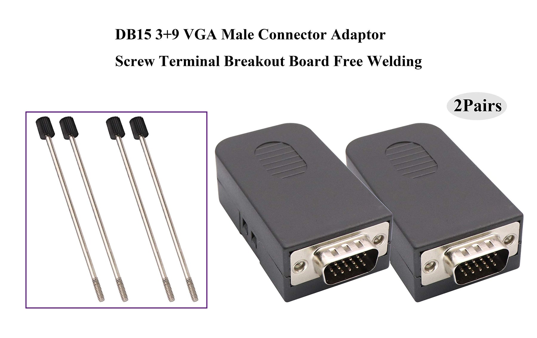- Original Connectors & Adapters – VGA Screw Terminal Block Adapter D-SUB 15 Pin 3 Row DB15 VGA Male to 16 Pin/Way Female Serial Terminal Breakout Board Connector Signal Module with case (2Pcak/Male) by AAOTOKK