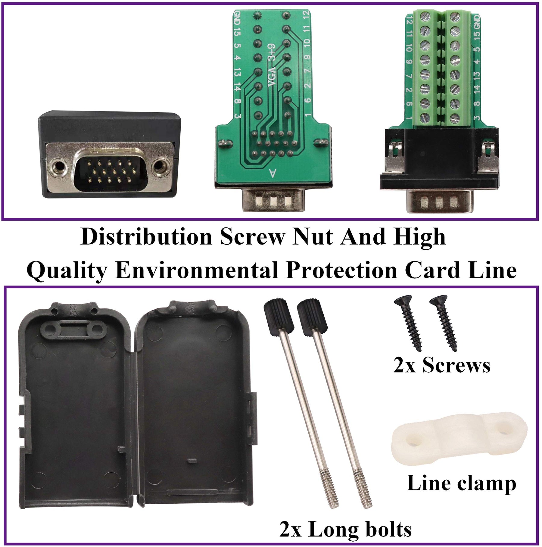 - Screw/solderless type,No soldering required, easy to use,Requires only a screwdriver and a wire stripper to terminate VGA cables,Saves time and hassle for installers.The housing is designed with a folding buckle for easy assembly and disassembly without tools.