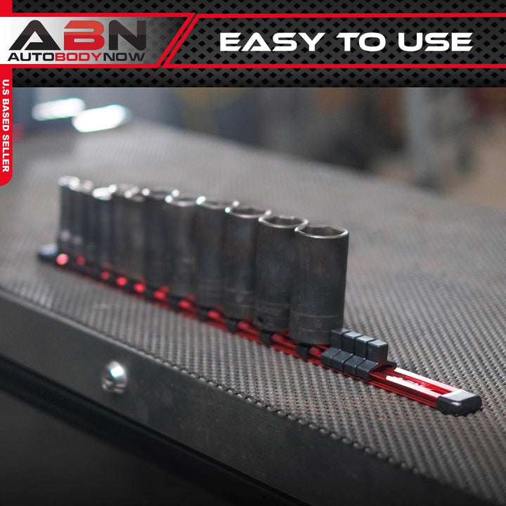 - STAY ORGANIZED: Use the ABN Orange Aluminum Socket Rail Tool Socket Organizer Tray 1-Pack SAE 1/2 Inch Socket Holders Organizers Rail and 16 Socket Clips to better organize your tool parts; This socket set organizer accepts both shallow and deep sockets