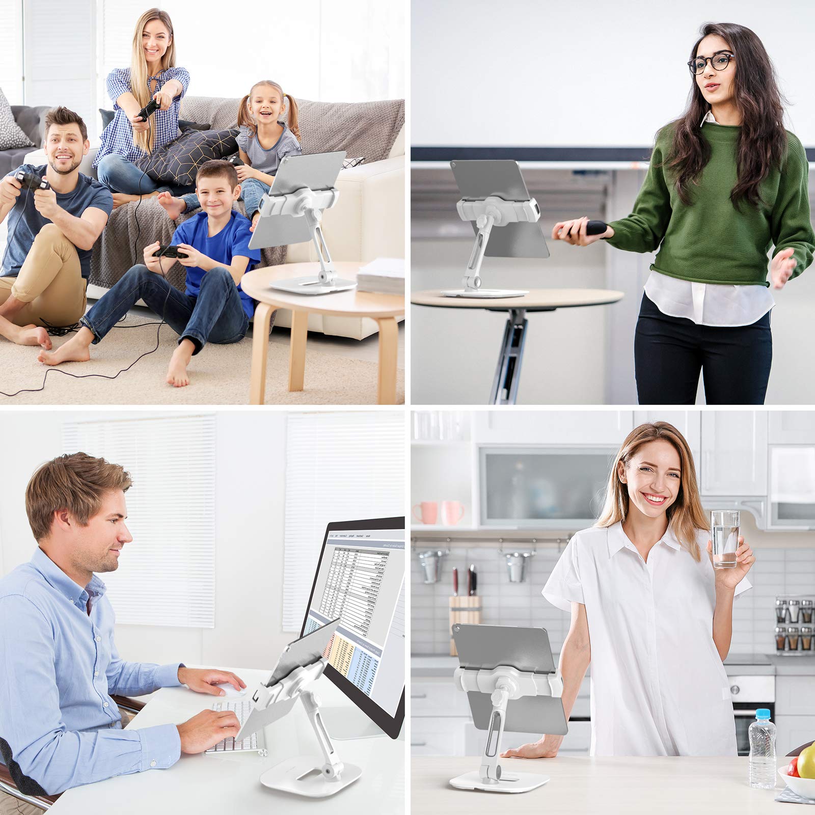 - Original Stands – Tablet Stand Holder, Stylish Aluminum iPad Stands, Foldable 360° Swivel iPad iPhone Table Stand Holder fits 4-11 Tablets/Smartphones for Kitchen Bedside Office POS Showroom Reception (White) by AboveTEK