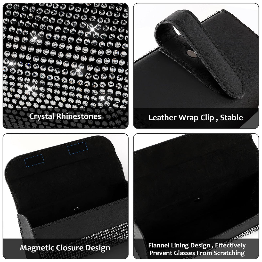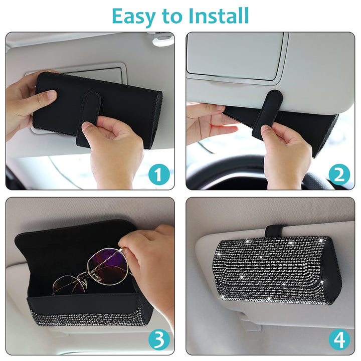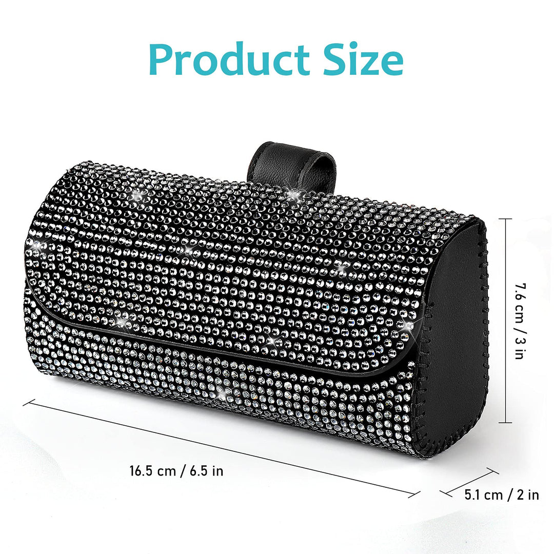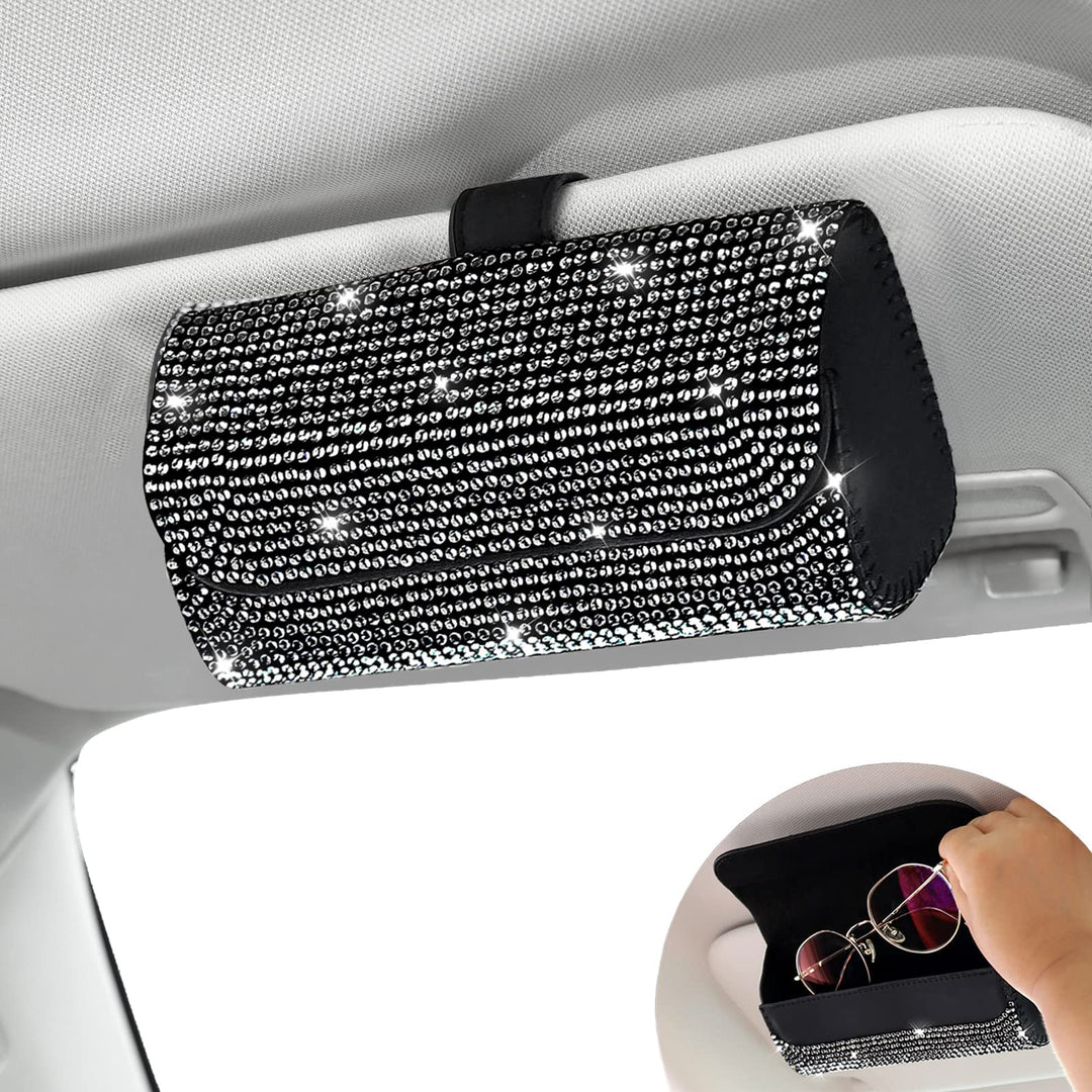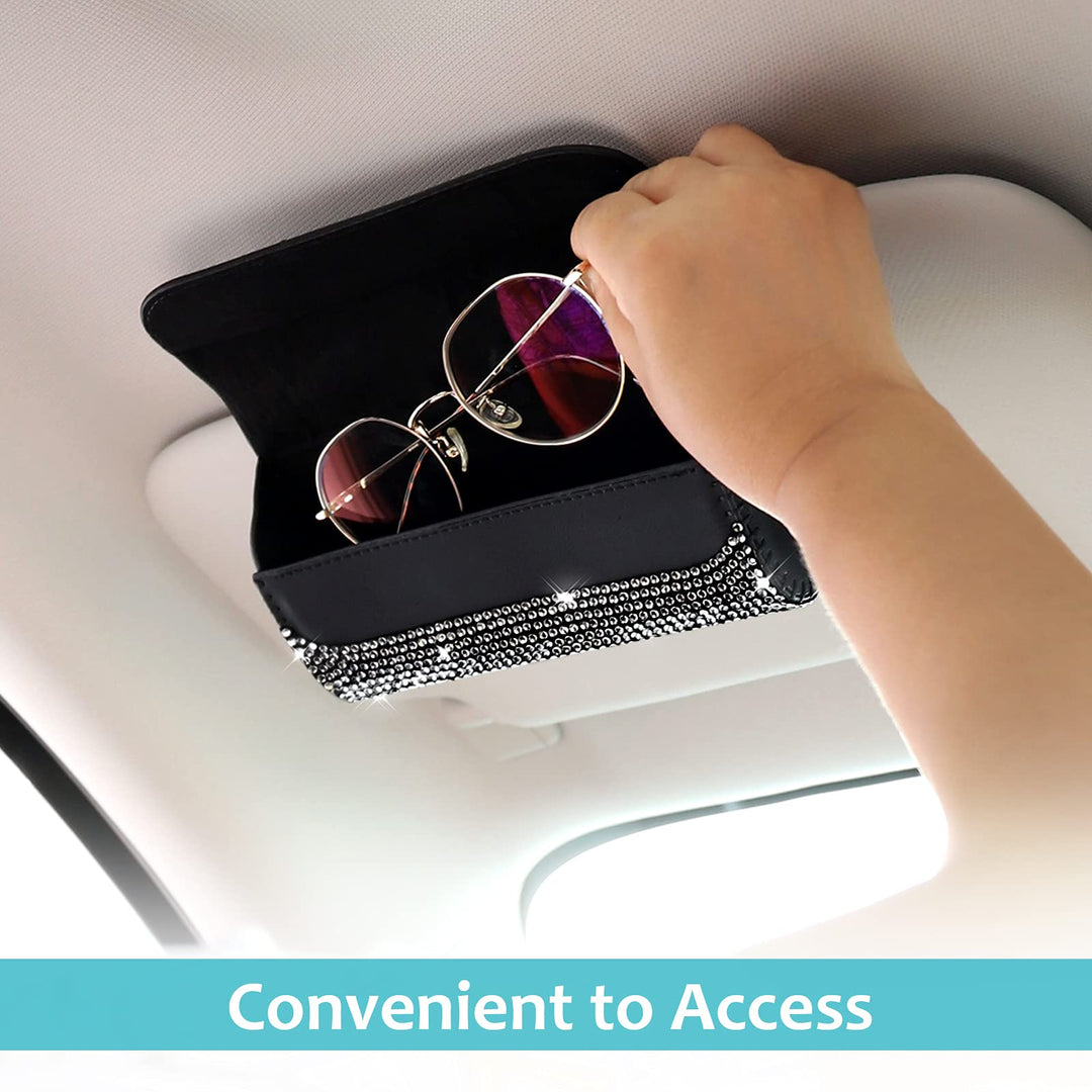 - Original Visor Accessories – Bling Sunglasses Holder for Car Sun Visor, Sparkling Auto Glasses Clip Case Eyeglasses Protective Box, PU Leather Car Sunglass Storage Organizer for Truck, SUV, RV (Black Crystal) by Accmor