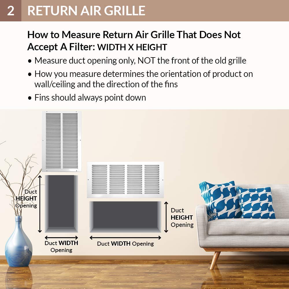 - Measure the duct opening to determine the correct size, not the outside of the grille
