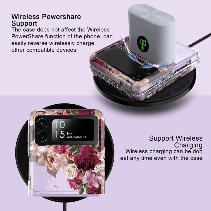 - Original – Galaxy Z Flip 3 Case,Glitter Clear Sparkly Bling TPU Built-in Non-Slip Mat Impact Resistant Shockproof Hybrid Full Body Protective Case Cover for Samsung Galaxy Z Flip 3 5G 2021 (Flower) by ACKETBOX