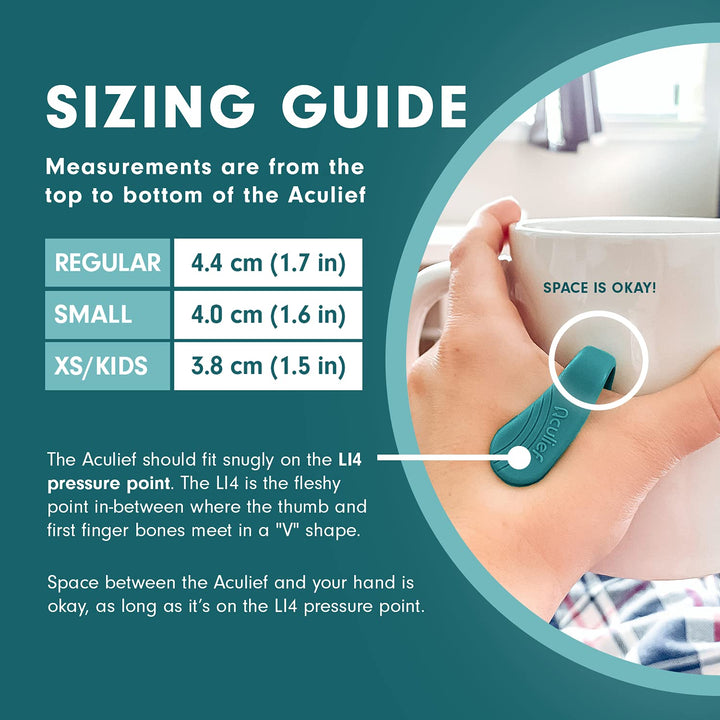 - Perfectly Sized: Aculief migraine relief clip is available in multiple sizes. Refer to the sizing guide in the 5th image to find your perfect fit. If the fsa migraine relief clip feels tight, gently stretch it before use. Do not for use if pregnant or have nylon allergies