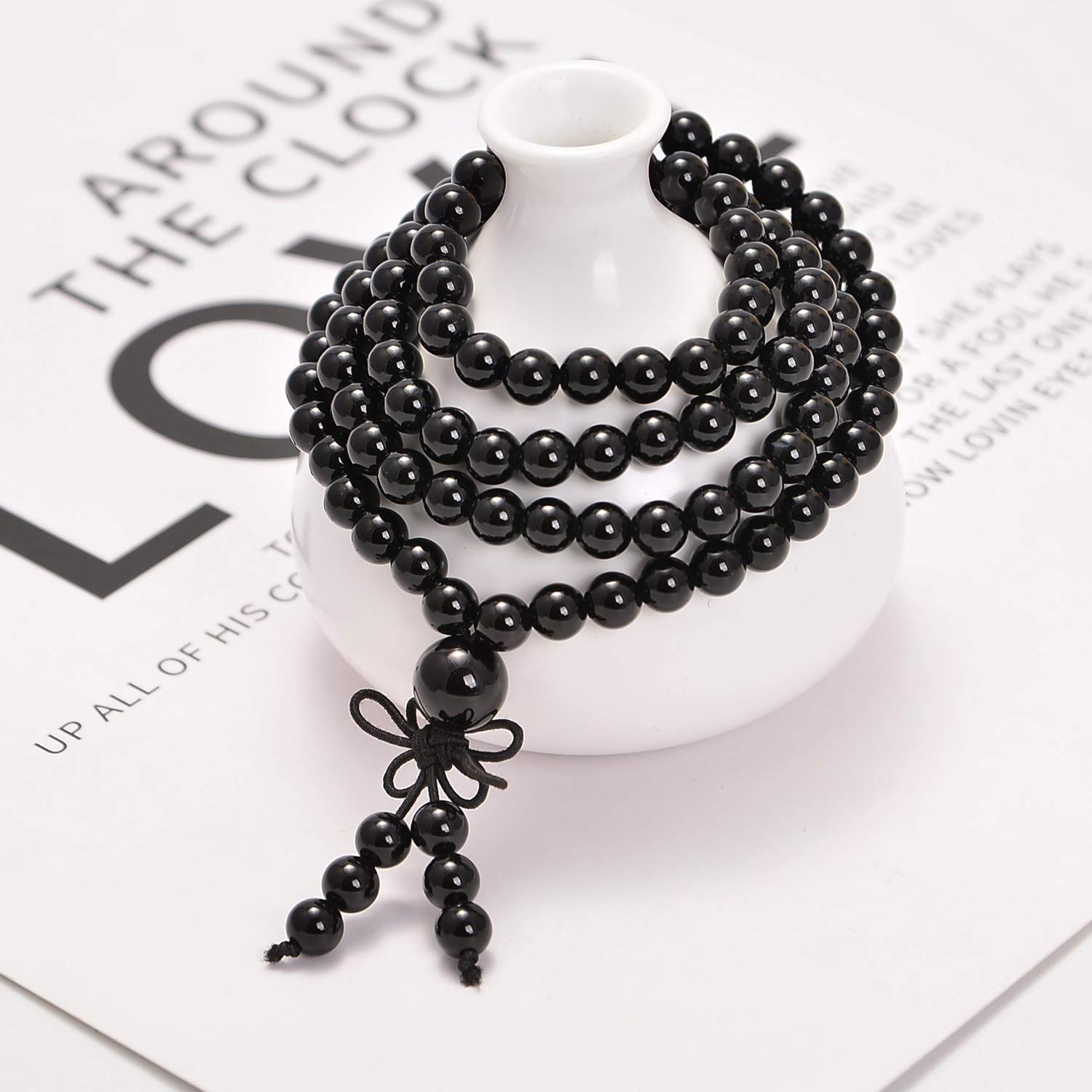 - Original – Natural Gemstones Buddhist 108 Prayer Healing Beads Mala Stretchy Bracelet Necklace 6mm (Black Onyx) by AD Beads